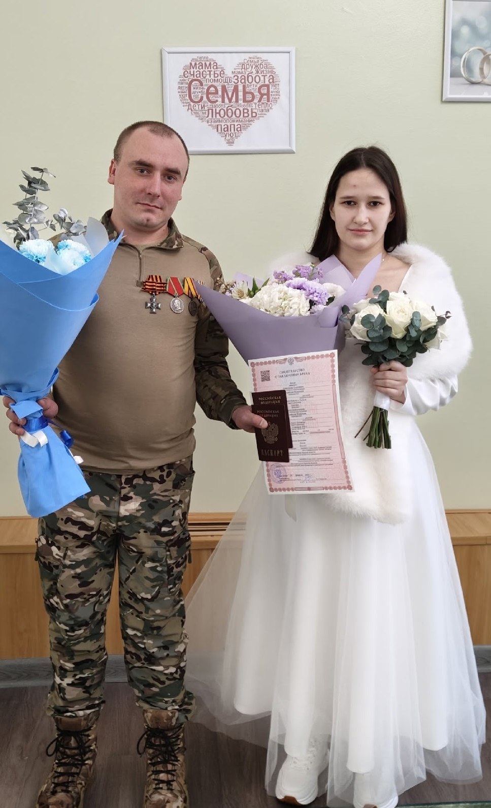 В железногорском ЗАГСе состоялась церемония регистрации брака между участником специальной военной операции Александром и его возлюбленной Анной.