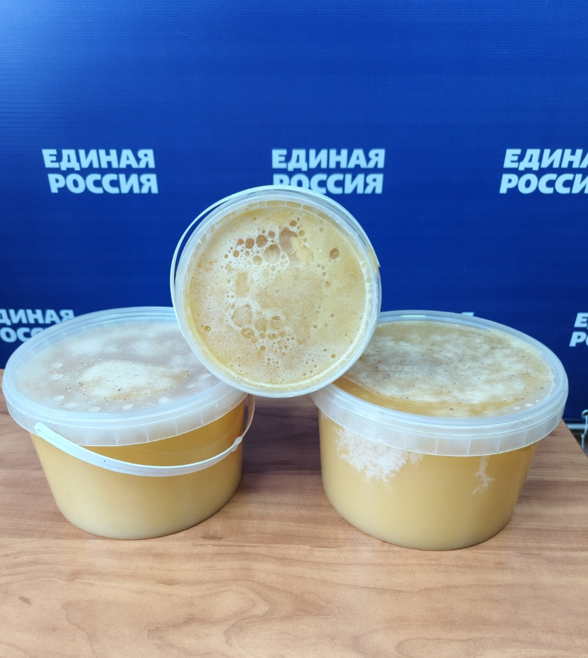 Порадовали бойцов и сладкими подарками: натуральным медом, который является не только лакомством, но и ценным источником витаминов, а также разнообразными конфетами, способными поднять настроение и зарядить энергией и, конечно же, свежими ароматными пирожками.