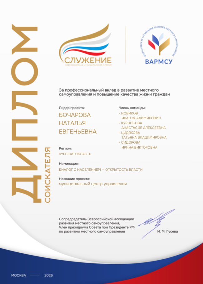 Проект команды администрации Курска отмечен на Всероссийской муниципальной премии «Служение»