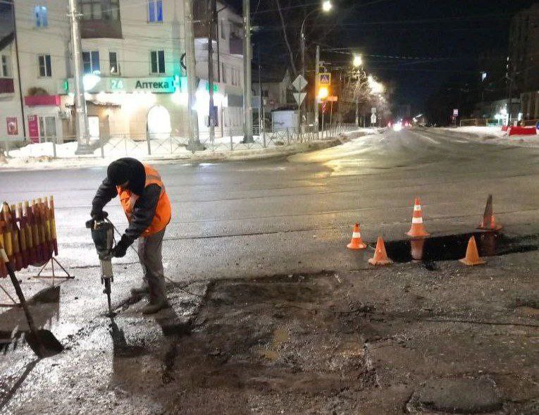 В администрации Железнодорожного округа подчеркнули, что сейчас работы ведутся на самых оживленных участках.