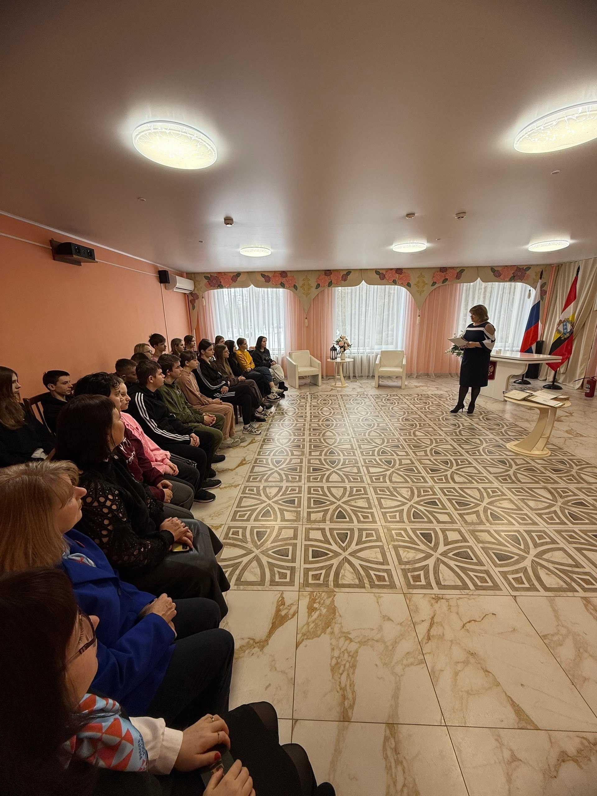 Начальник отдела ЗАГС Людмила Дударева рассказала ребятам об истории учреждения, архивных документах и, конечно, о значимости записей актов гражданского состояния. Ведь именно здесь фиксируются ключевые моменты жизни каждого человека: рождение, брак, развод и смерть.