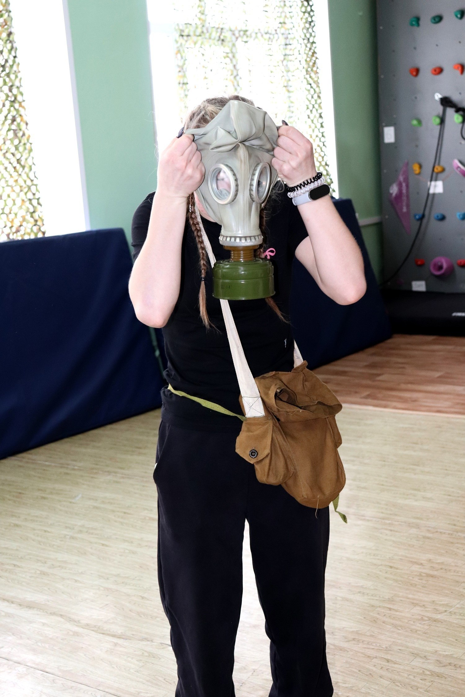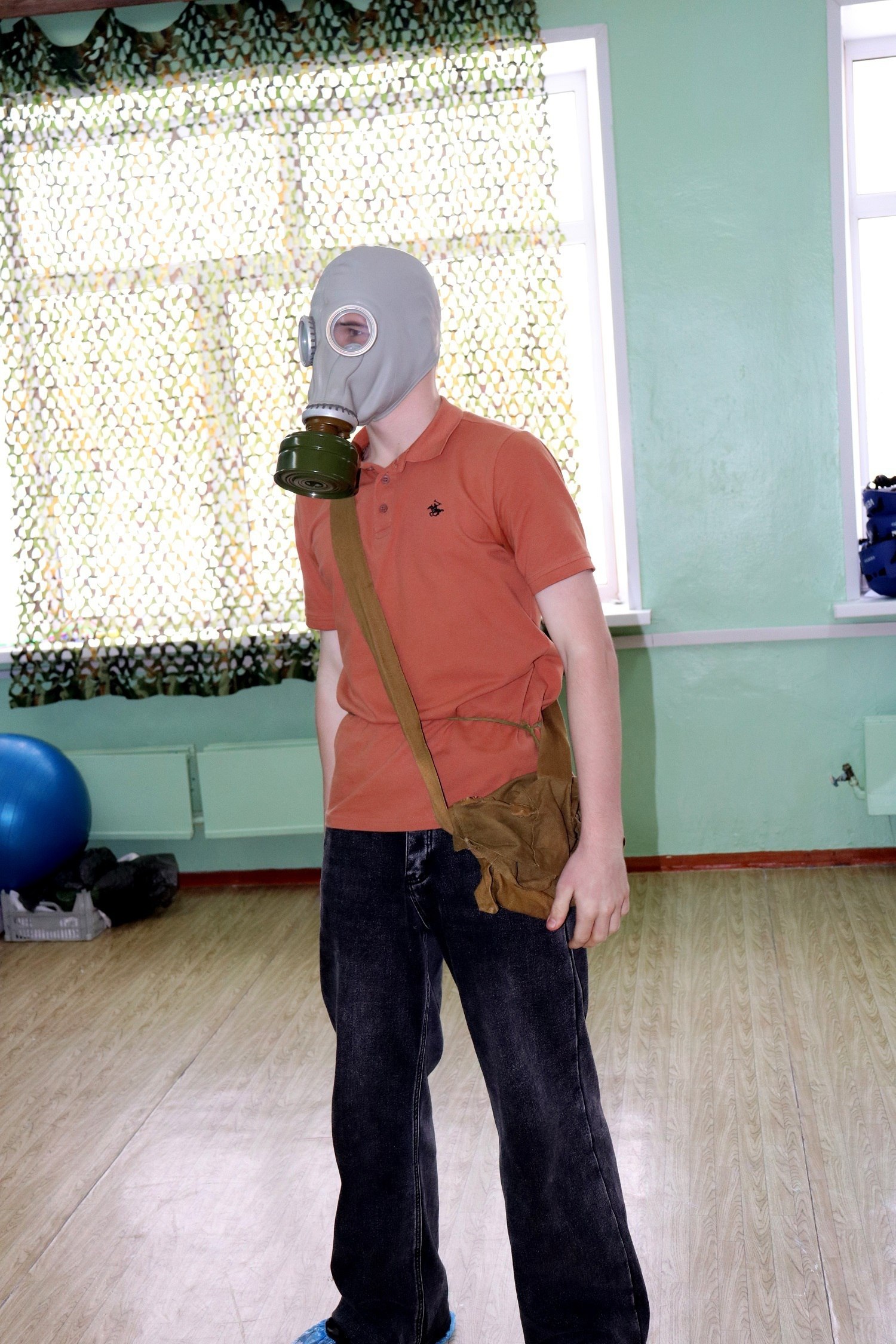 Надевание противогаза;