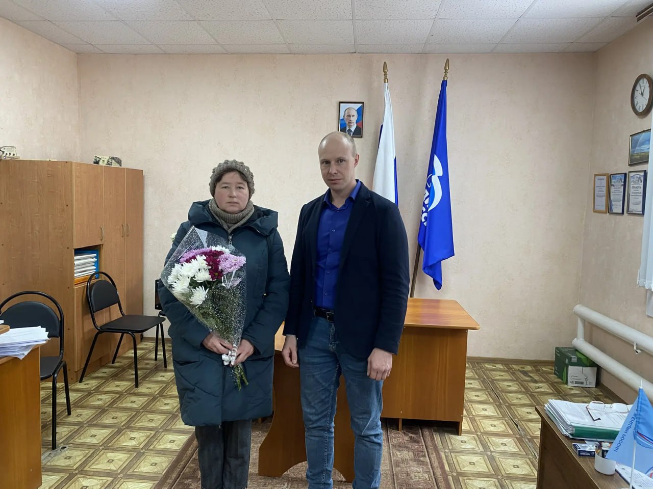 В преддверии Международного женского дня депутат Курской областной Думы, региональный координатор партпроекта «Российское село» Петр Чепурин поздравил почтальона Обоянского почтамта Юлию Михалеву с 8 Марта.