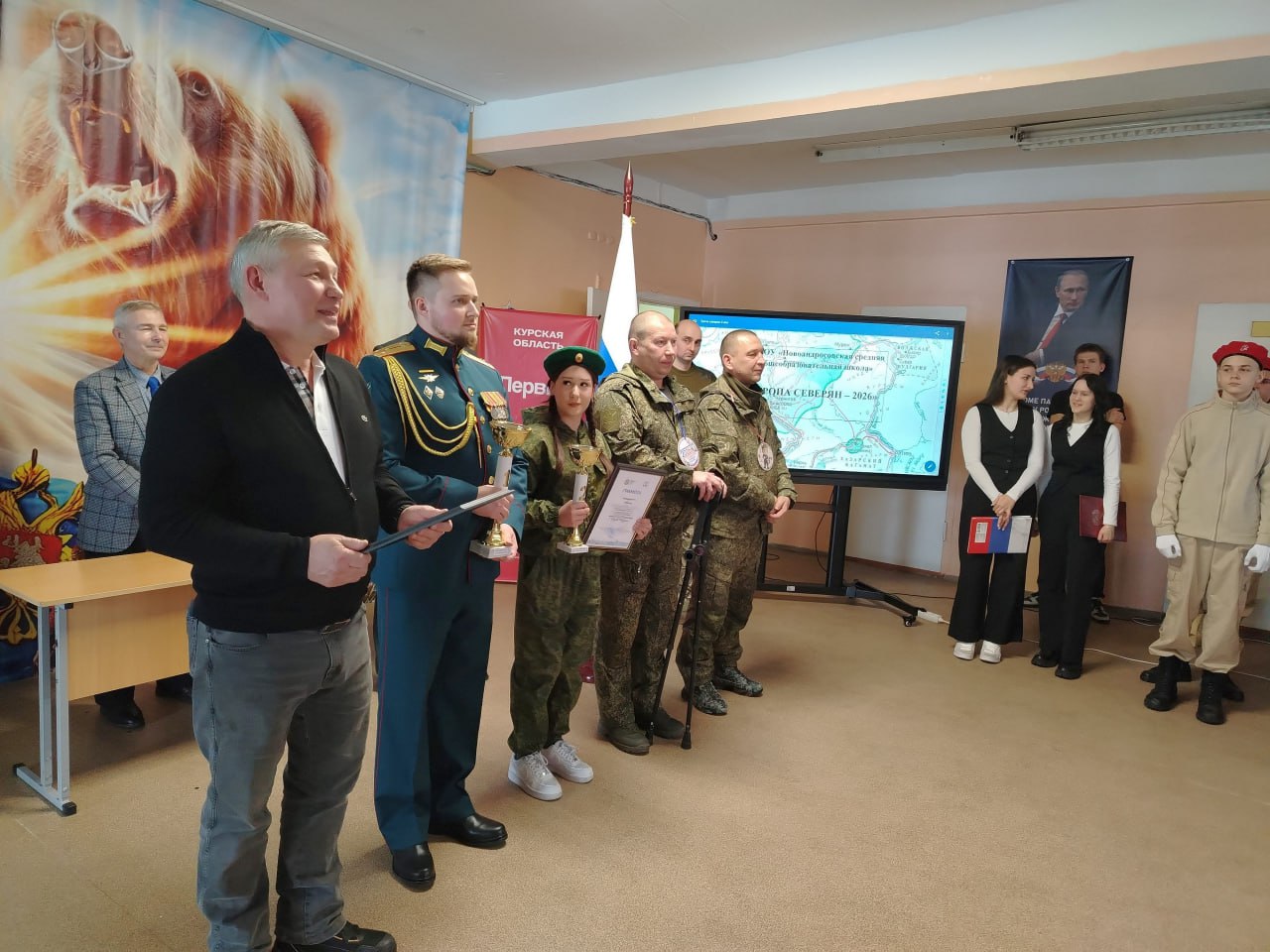 В Железногорском районе прошла региональная военно-спортивная игра «Тропа северян». Всех конкурсантов и гостей поприветствовал участник специальной военной операции, участник регионального проекта «Курск.Герои!» Александр Кретов.