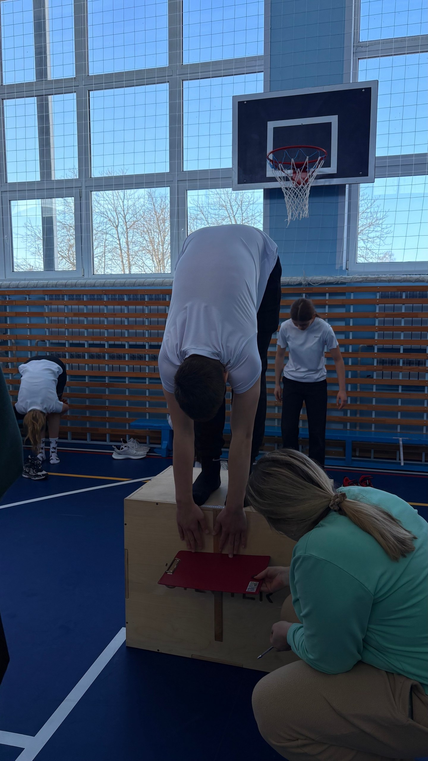 -наклоне на гимнастической скамье