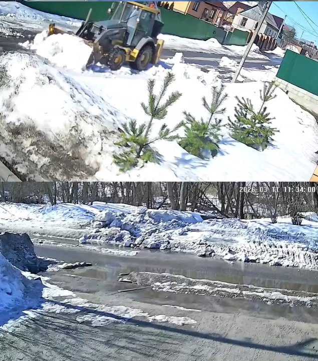 Недавно женщина вместе с детьми вручную расчистила траншею для отвода талых вод в ливневку. Однако проезжавший мимо трактор сгреб снег с дороги прямо в подготовленную канаву, хотя рядом было свободное место для отвала.