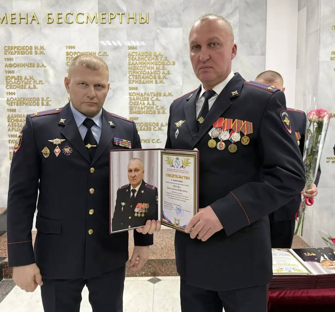 Церемония занесения на Доску Почета прошла в УМВД России по Курской области.