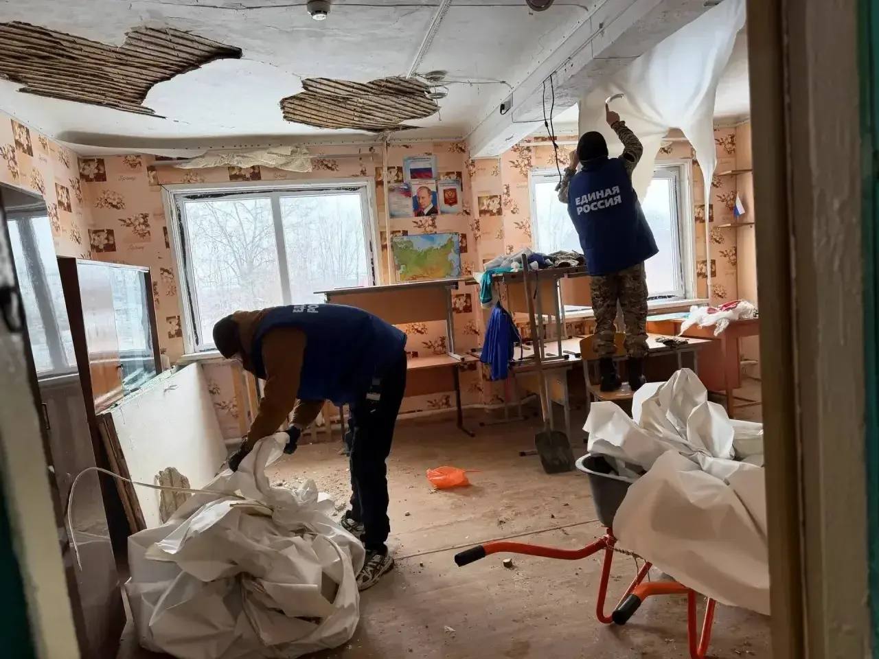 Волонтёры 16-й смены лагеря Единой России «Курский рубеж» за две недели выполнили большой объём работы по восстановлению социальных учреждений. Работы велись сразу в трёх районах Курского приграничья.