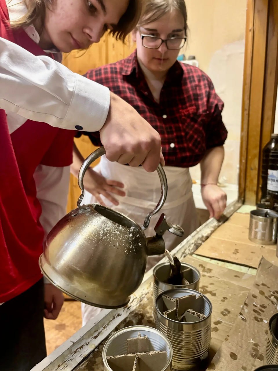ребята изготавливали окопные свечи, вкладывая в каждую залитую воском банку частичку тепла и заботы.