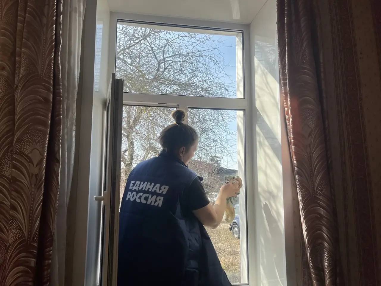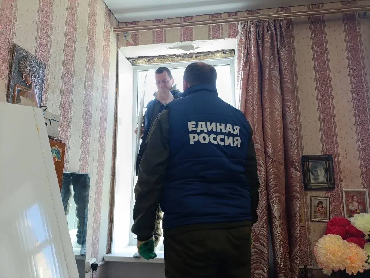 Участники смены восстановили панельную отделку оконных проемов снаружи и внутри. Заклеили пленкой поврежденные натяжные потолки и помогли навести порядок в доме.