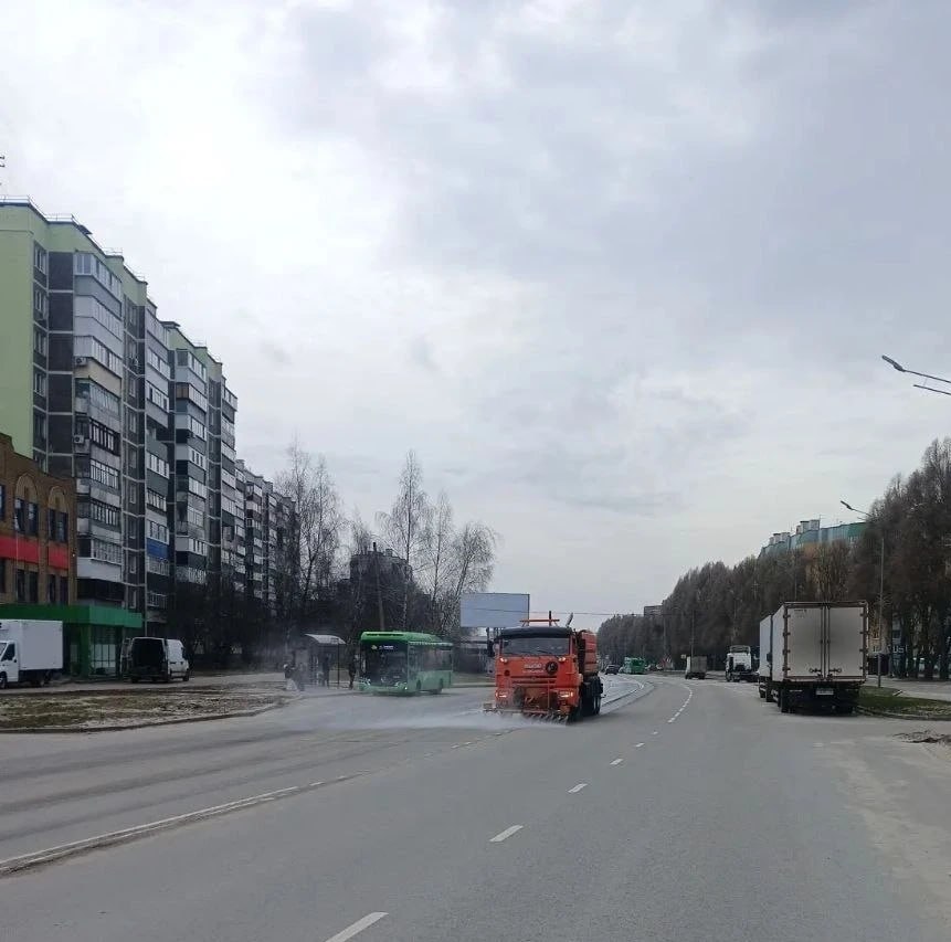 Ночью спецтехника мыла дорожное полотно на улицах Просторная, 50 лет Октября, Бойцов 9-й дивизии, а также проспектах Дружбы и Клыкова.