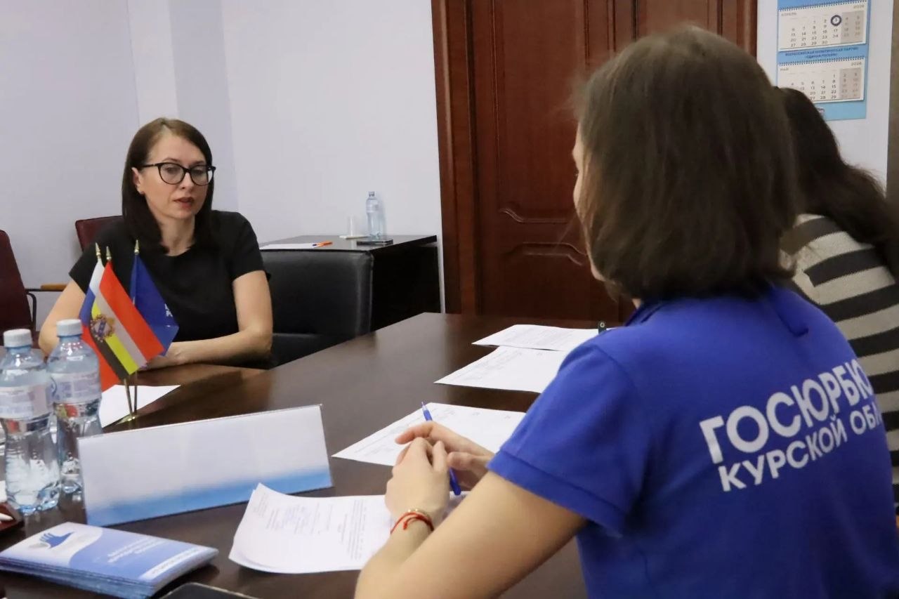 На вопрос отвечали заместитель начальника управления социально-трудовых отношений и охраны труда Министерства экономического развития, занятости населения и туризма Курской области Крестина Хачатрян и заместитель начальника отдела по оказанию бесплатной правовой помощи ОКУ «Госюрбюро Курской области» Валентина Мирошниченко. Они дали ей разъяснения и взяли ее вопрос в работу.
