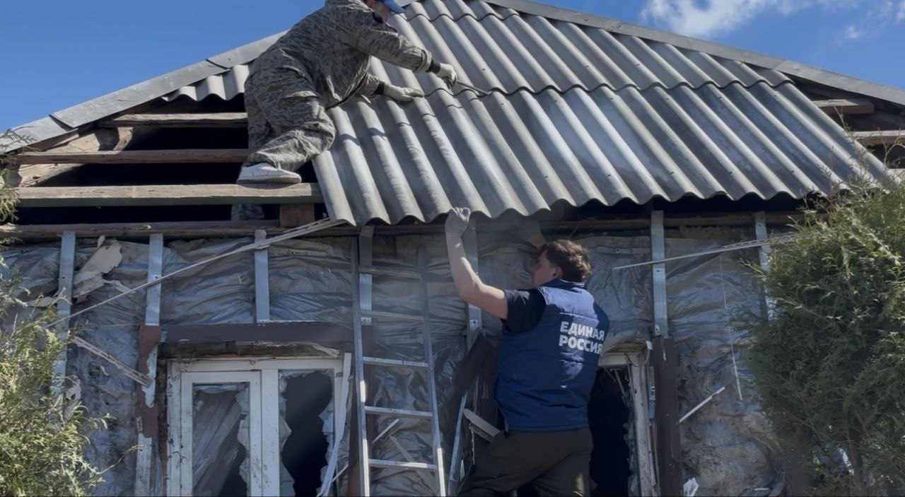 Волонтеры Единой России помогают устранять последствия обстрела Льговского района Курской области
