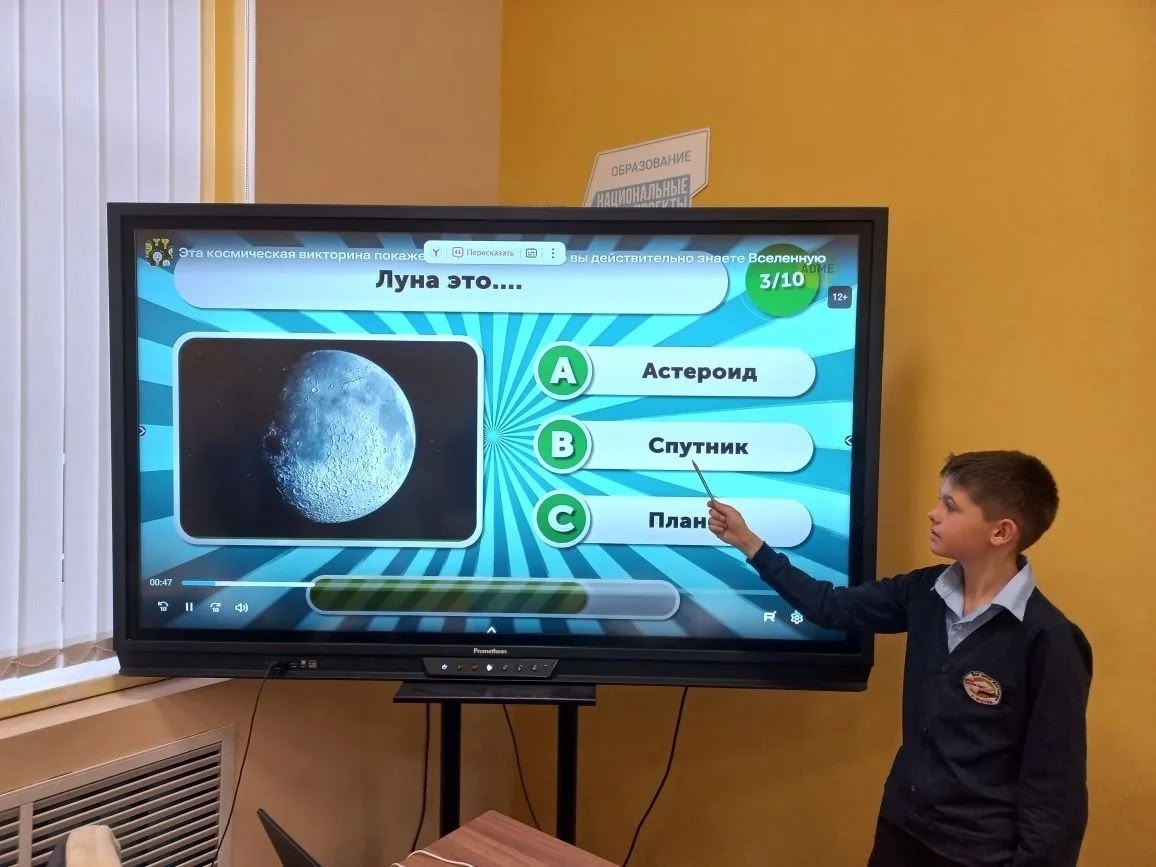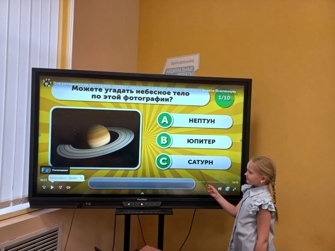 В рамках Недели космоса 3а класс Фатежской школы № 1 (классный руководитель Гетман Вера Анатольевна) участвовал в викторине «Космическое путешествие». Учащиеся узнали много нового и интересного о планетах Солнечной системы, познакомились с советскими и российскими космонавтами и их работе и быте в космосе.
