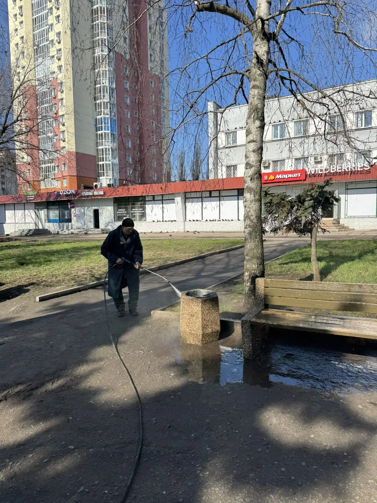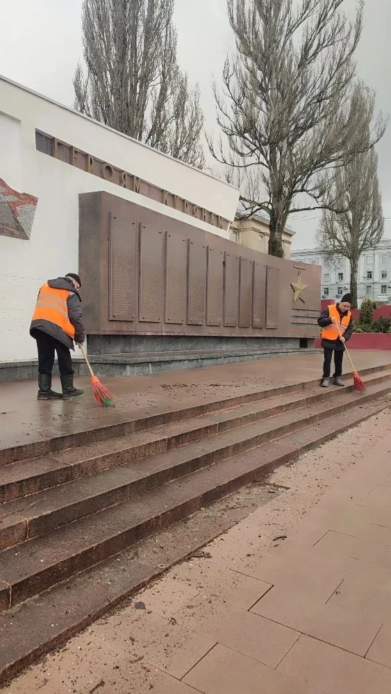 Подрядчик убирает мусор, очищает урны, подметает и чистит тротуары и приводит в порядок малые архитектурные формы.