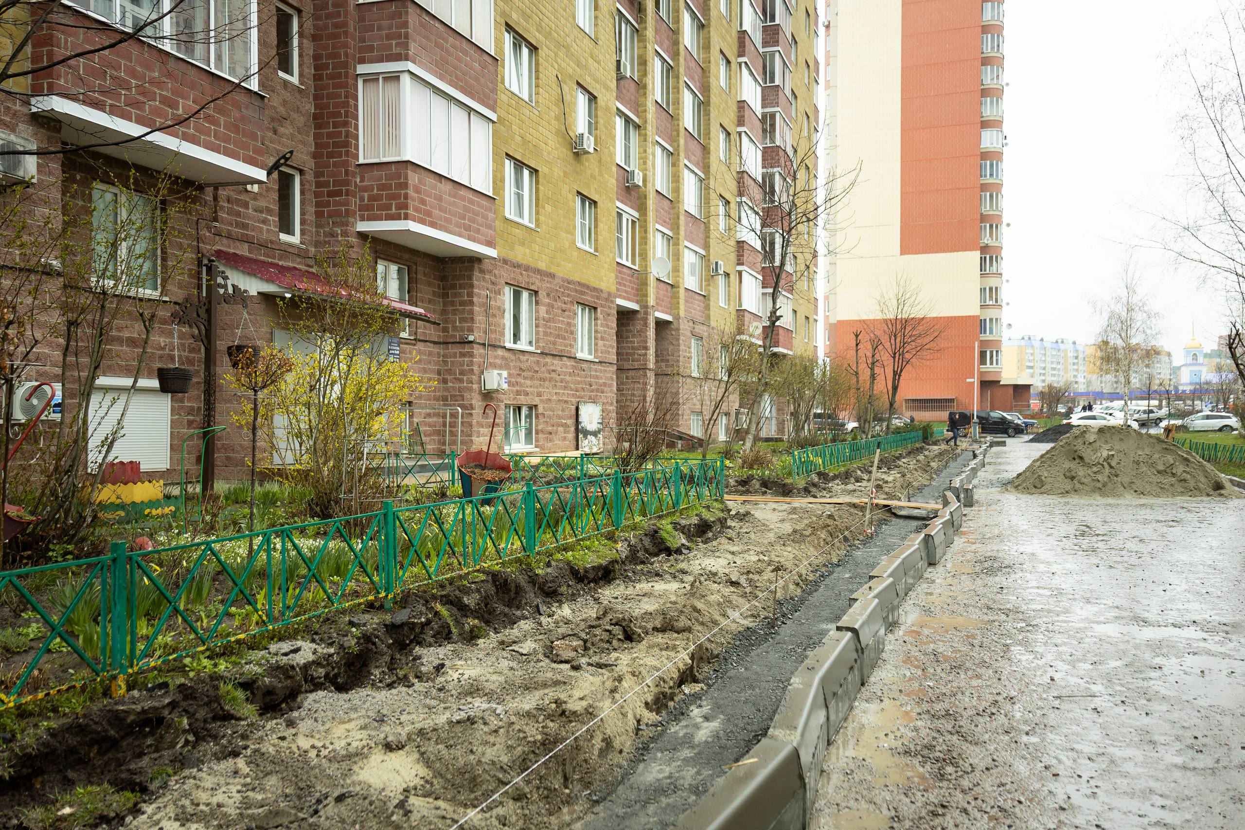 В некоторых дворах ремонт уже близок к завершению, однако сроки будут зависеть от погодных условий.