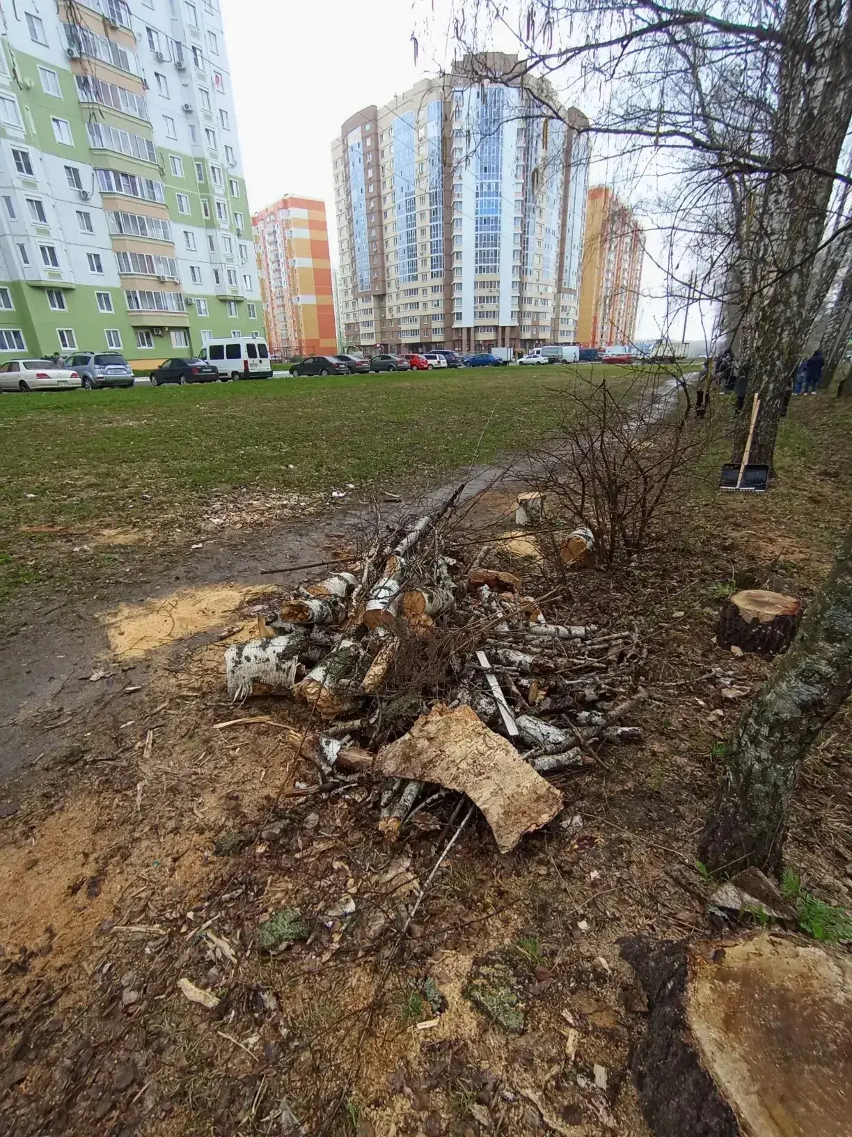 Последнее падение было зафиксировано на прошлой неделе. Упавшие стволы оперативно распилены сотрудниками ГО и ЧС. Основной этап сноса аварийных берёз завершён 5 марта 2026 года.