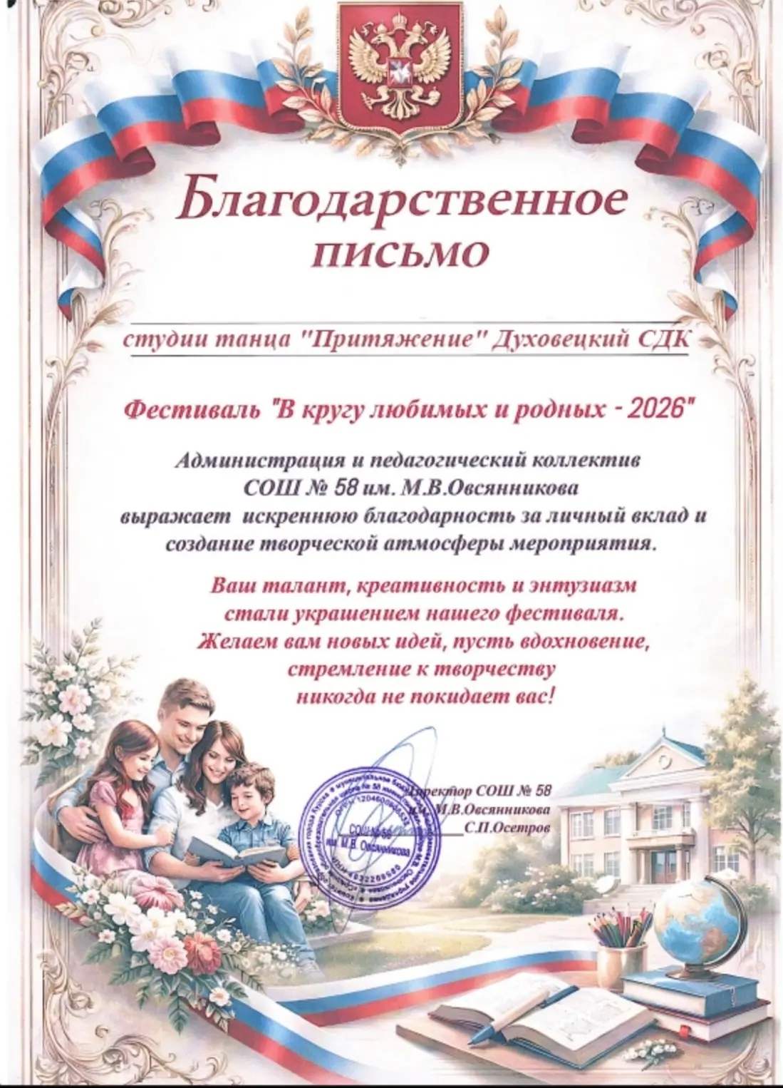 Студия танца «Притяжение» Духовецкого Дома культуры ярко засветилась на фестивале «В кругу любимых и родных». За выступления ребята получили заслуженные благодарности. Поздравляем юных артистов и желаем новых творческих побед.