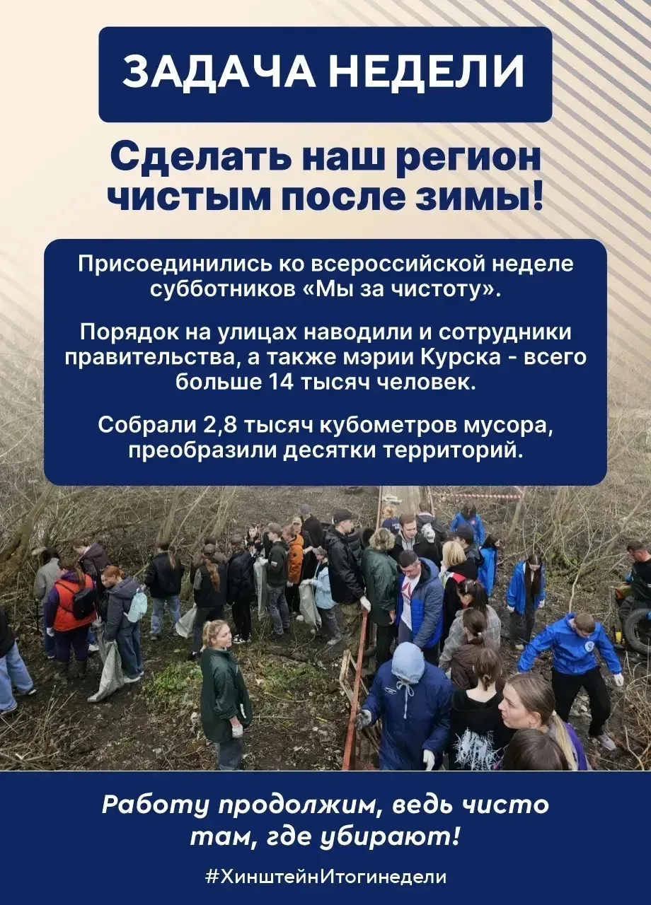 Глава региона Александр Хинштейн делится итогами недели. Подробнее в карточках. #губернатор46