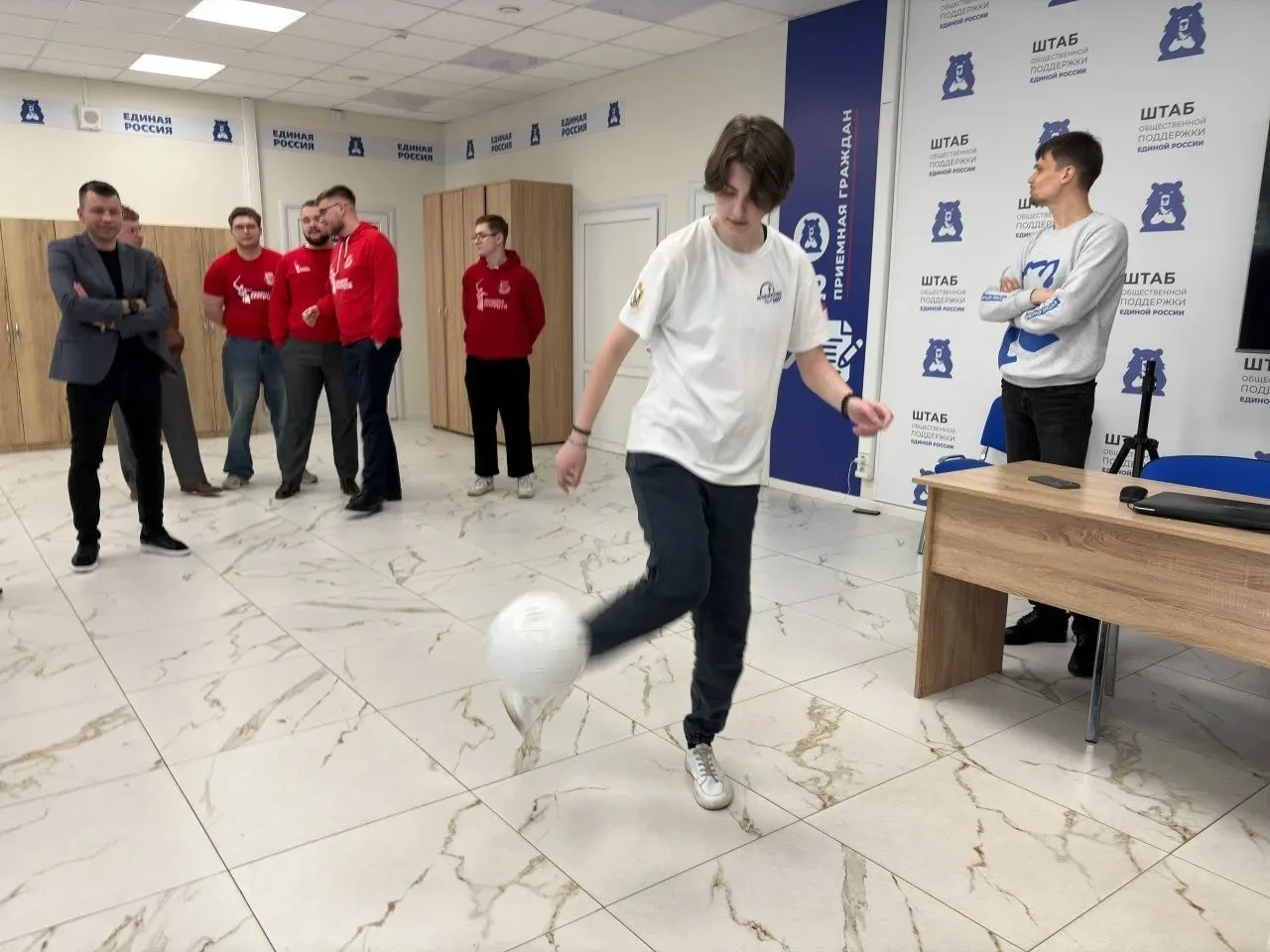 В штабе общественной поддержки Единой России по партийному проекту «Детский спорт» чеканили футбольный мяч, говорили о буднях клуба «Авангард» и развитии спорта в регионе.