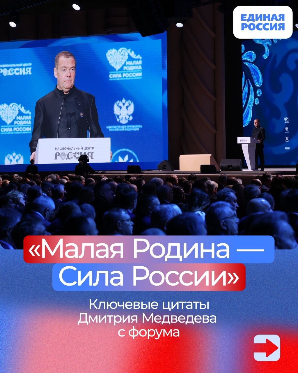 Председатель Единой России, зампредседателя Совбеза РФ Дмитрий Медведев выступил на III всероссийском муниципальном форуме «Малая Родина — сила России»