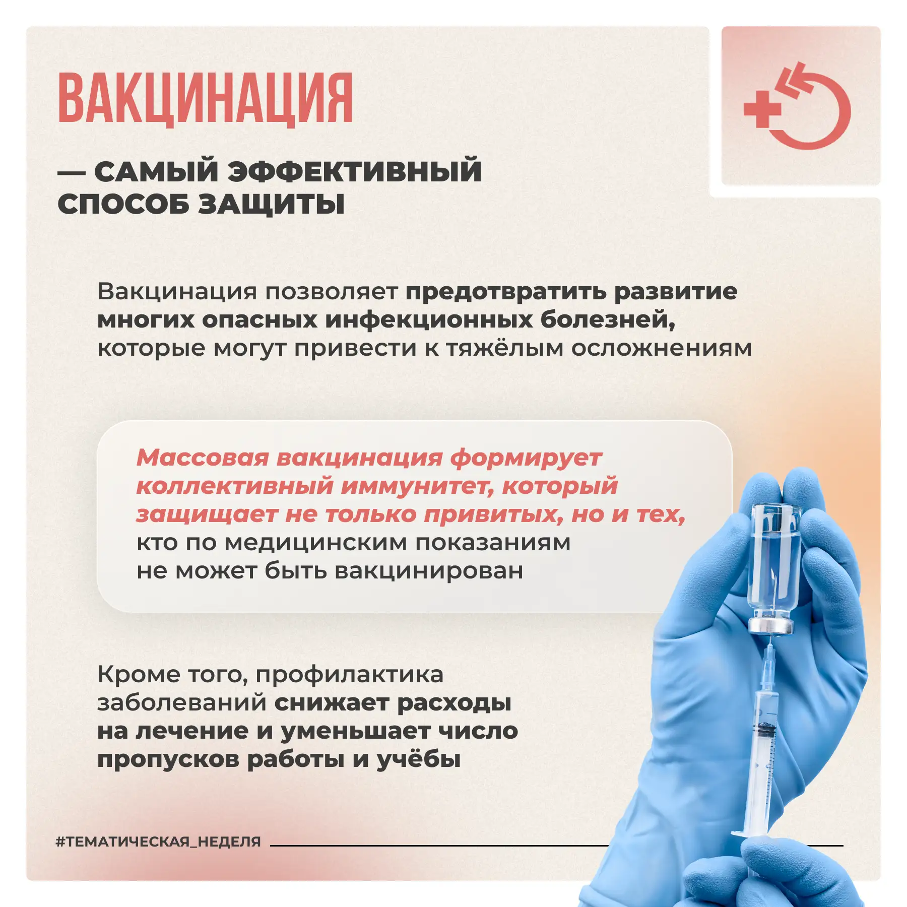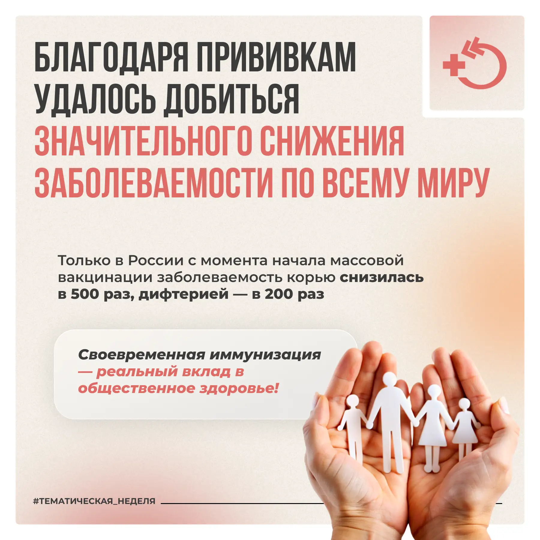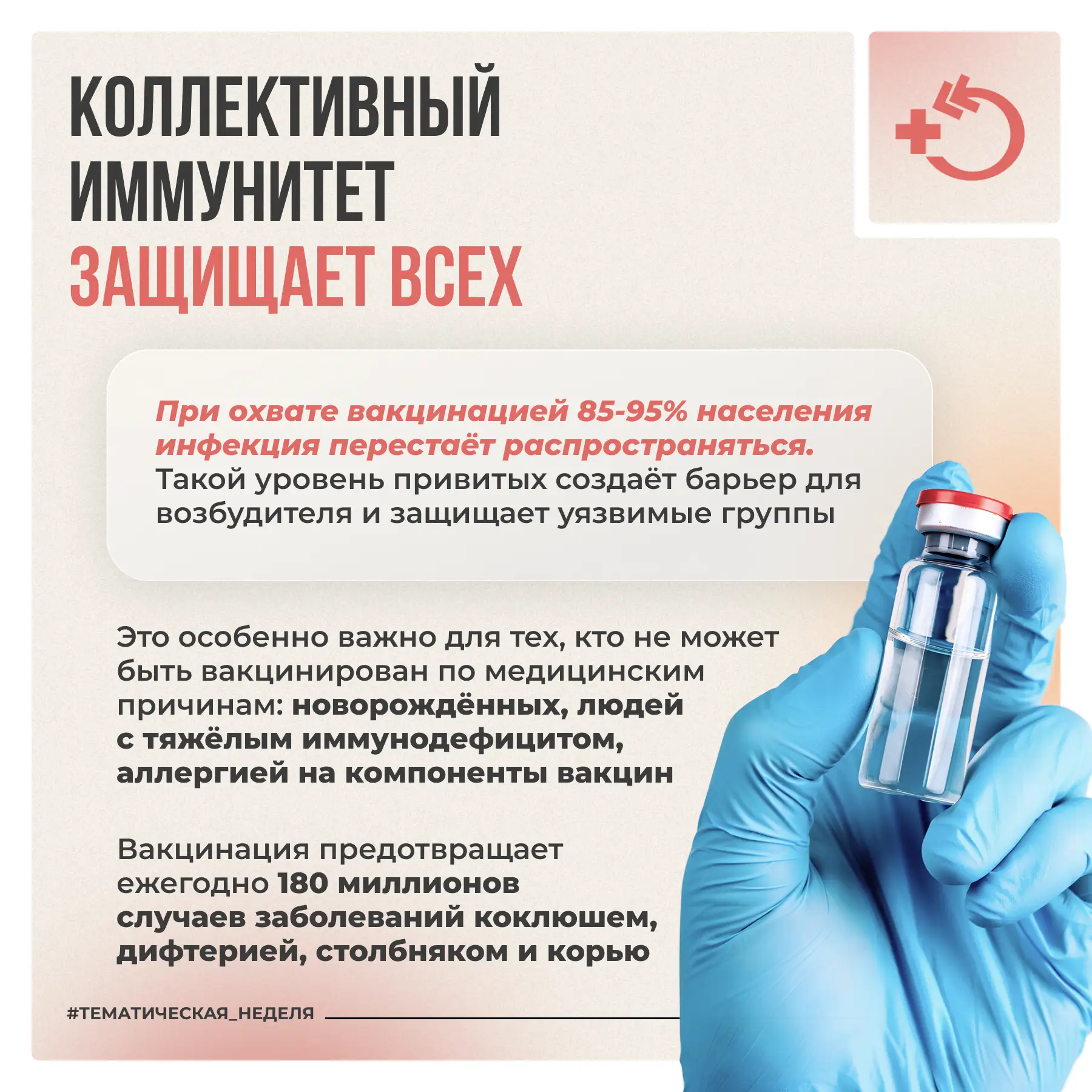 При охвате прививками 85-95% населения инфекция перестаёт распространяться. Это защищает не только вакцинированных, но и тех, кто по медицинским показаниям не может быть привит.