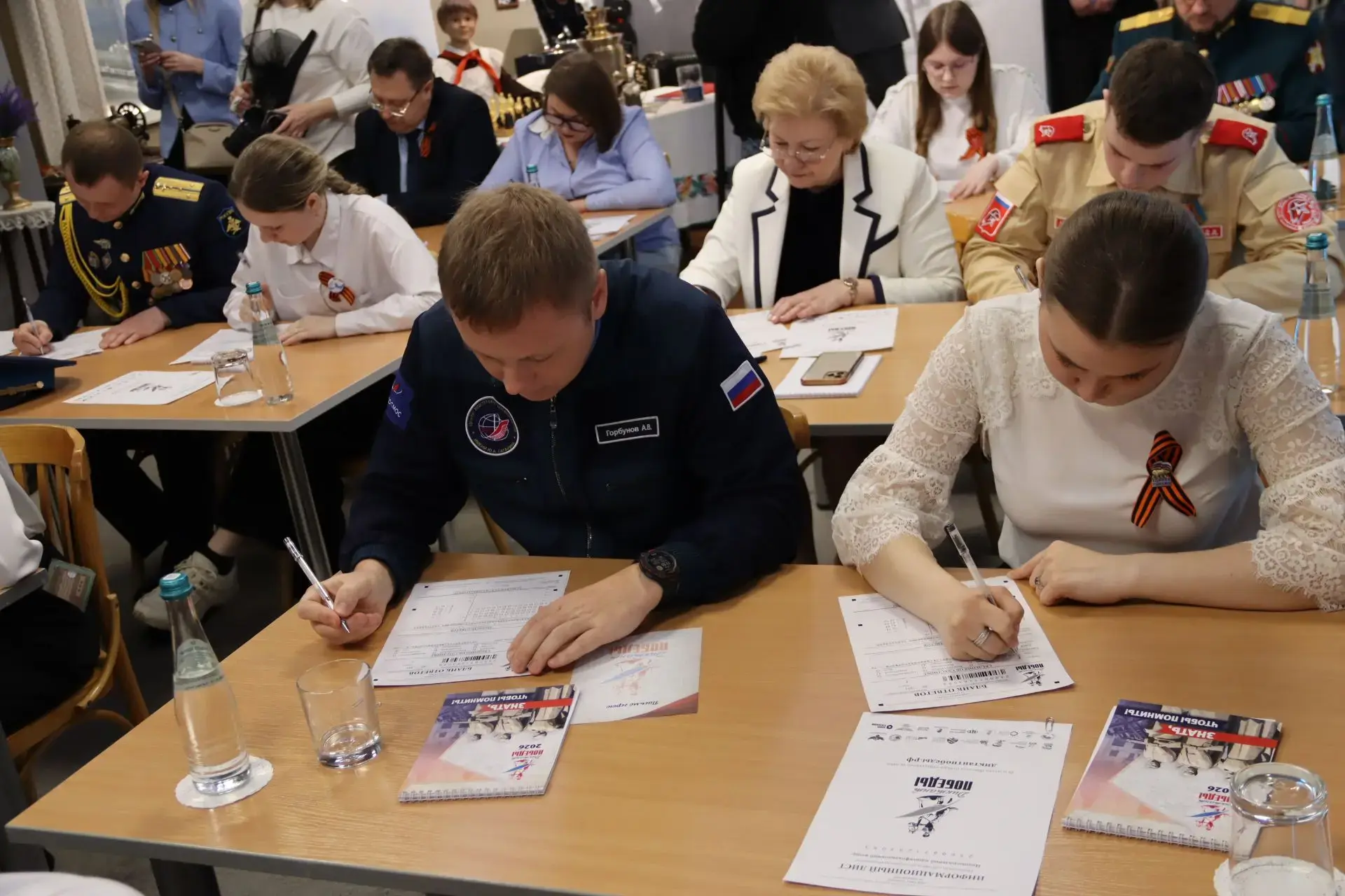 На уникальной площадке военно исторического музея «Юные защитники Родины» Диктант написали губернатор Курской области Александр Хинштейн и российский космонавт-испытатель отряда ФГБУ «НИИ ЦПК имени Ю. А. Гагарина», уроженец Курской области, города Железногорска Александр Горбунов.