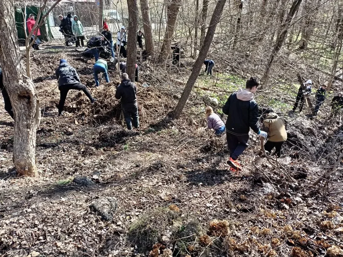 Из его глубин мы выгребали бытовой и строительный мусор, спиленные ветки фруктовых деревьев, туи, можжевельника, засохшие гортензии. Мусор вывозили многотонными самосвалами, ветки и доски – отдельно. Полностью очистить парк не удалось: нужна тяжёлая техника. Даже такой большой командой невозможно вручную убрать всё, что натаскали местные жители. Мы продолжим приводить в порядок этот уголок природы, убирая за теми, кто, увы, не разделяет наше стремление к чистоте.