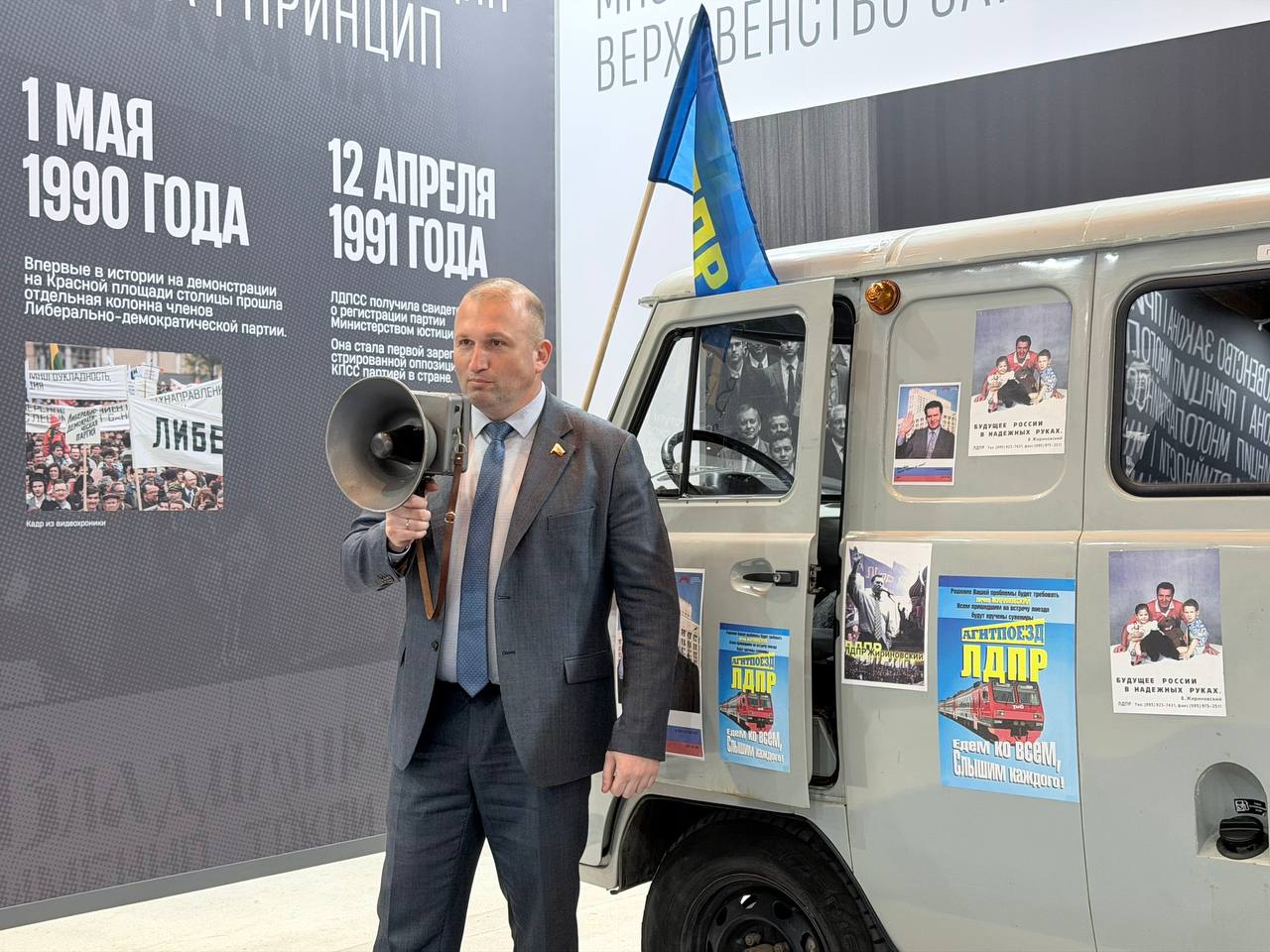 Представьте себе поезд, идущий сквозь время. Организаторы построили экспозицию именно так: от «Станции «Детство»» в послевоенной Алма-Ате — через студенческую кухню 70-х, где варилась та самая «каша» свободомыслия, и легендарный Арбат, где Жириновский учился спорить с толпой и для толпы. Отдельно радовал глаз тот самый «уазик» — агитмобиль, символ полевой работы партии. И караоке-будка, где любой мог спеть любимые песни Владимира Вольфовича. Выставка стала местом силы, где прошлое встречается с настоящим.