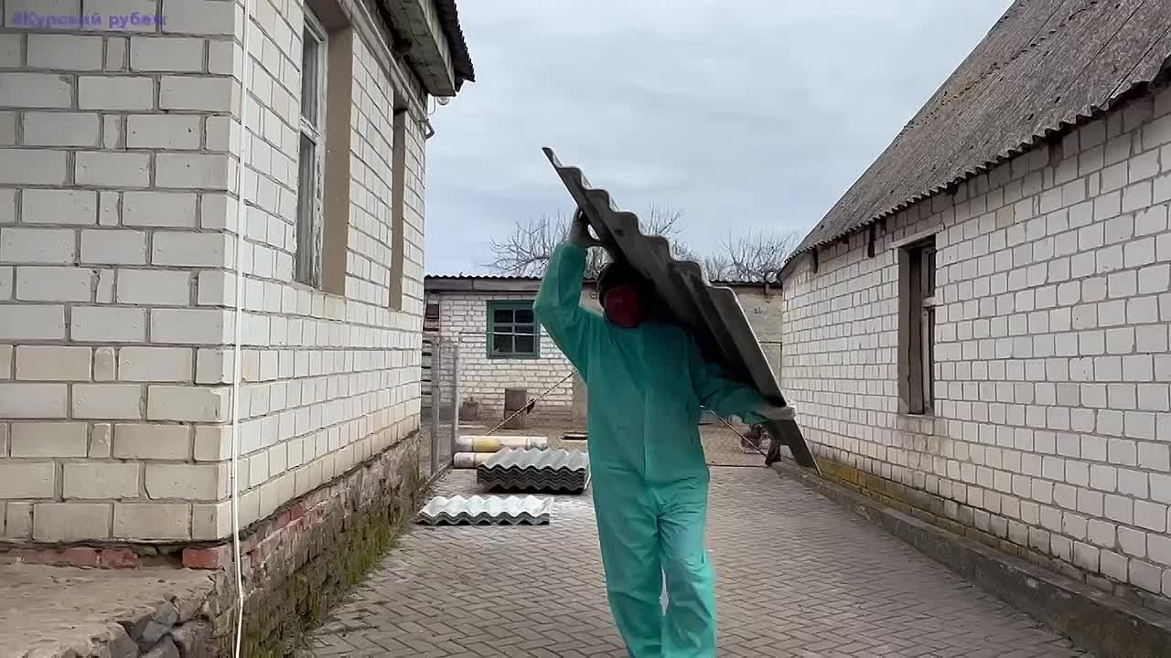 Добровольцы проводят восстановительные работы по ремонту крыши жилого дома, разбирают завалы, убирают образовавшийся мусор.