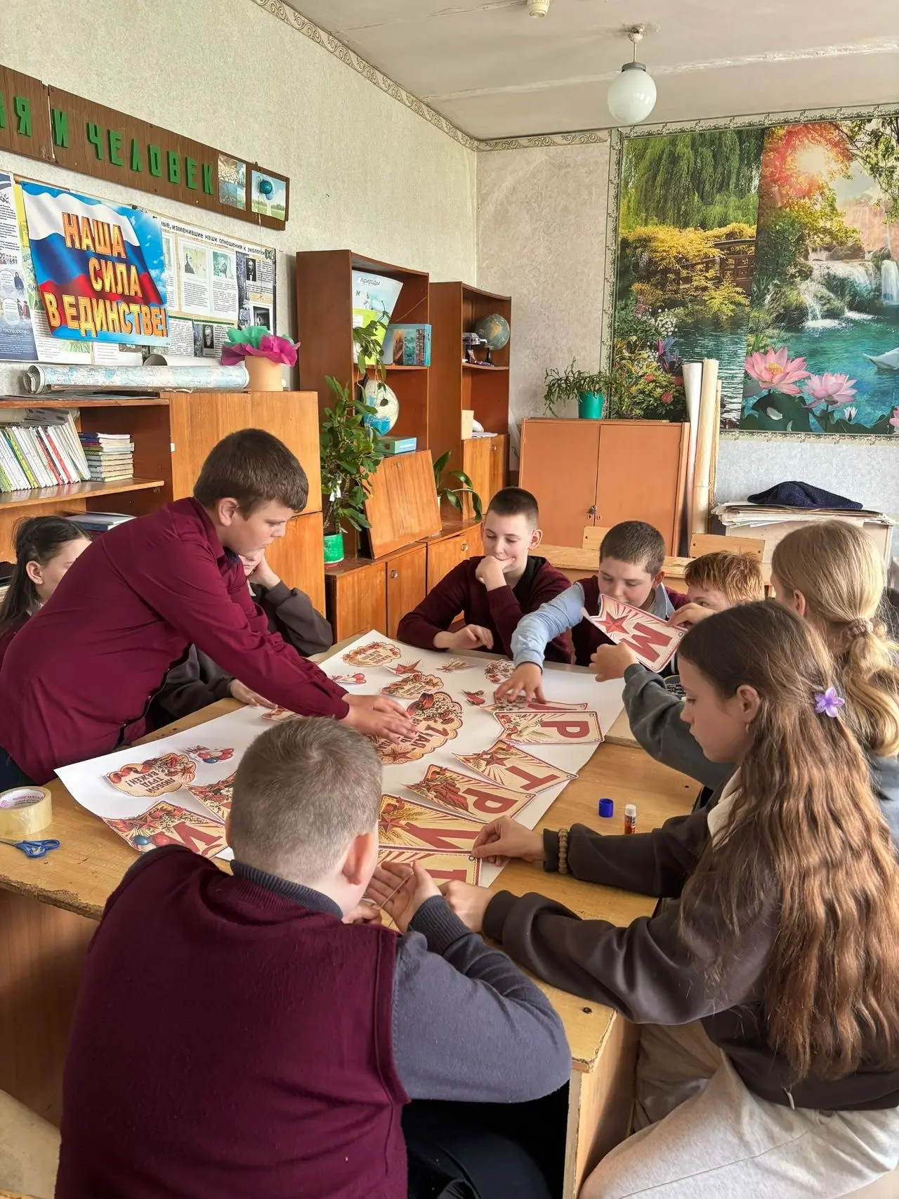 Ребята из школьного медиацентра оформили праздничный плакат.