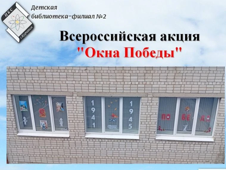 В преддверии главного весеннего праздника — Дня Победы — Детская библиотека-филиал №2 присоединилась к Всероссийской акции «Окна Победы». Сотрудники украсили окна тематическими композициями. Теперь каждый прохожий, оказавшись рядом с библиотекой, может прикоснуться к истории, просто подняв глаза.