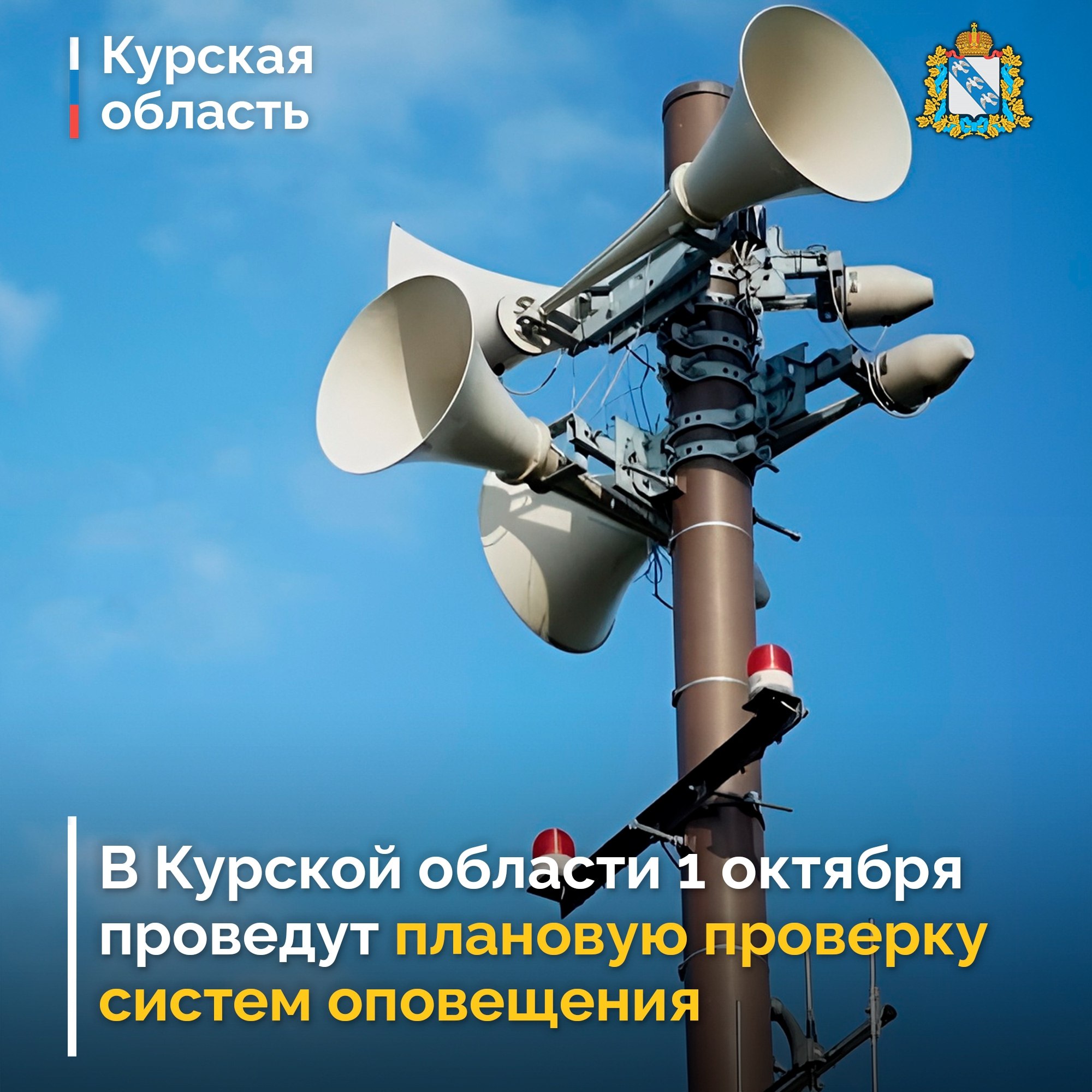 1 октября в 10:40 в Курской области предусмотрена плановая комплексная проверка готовности региональной системы оповещения населения с включением оконечных устройств оповещения и доведением проверочных сигналов и информации до жителей региона. Она пройдет с последующим замещением эфира общероссийских обязательных общедоступных теле- и радиоканалов.