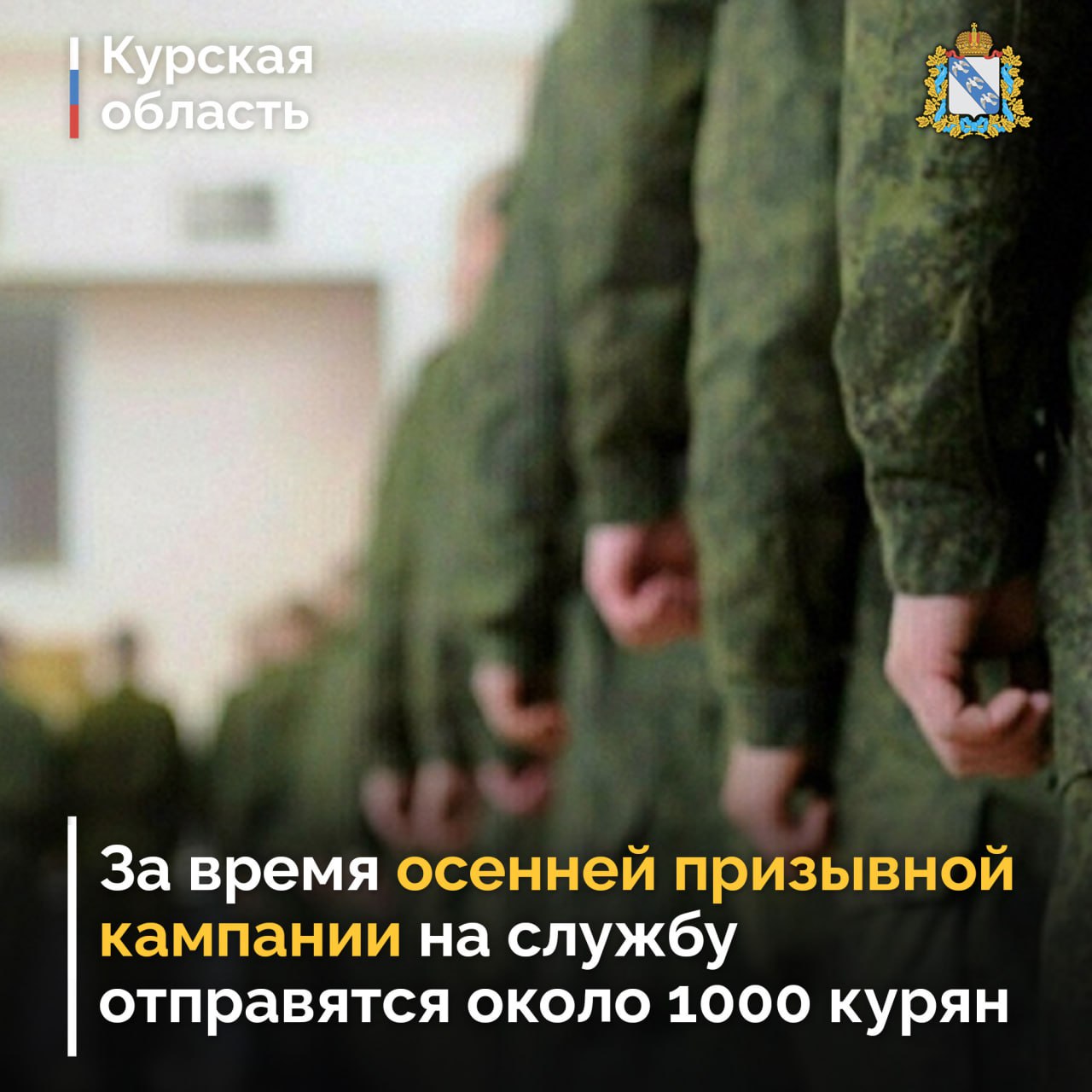 В регионе с 1 октября стартует осенняя призывная кампания, которая завершится 31 декабря. В Курской области планируют призвать около тысячи человек. В основном курские призывники будут проходить военную службу в границах Московского военного округа, в том числе в Курске.