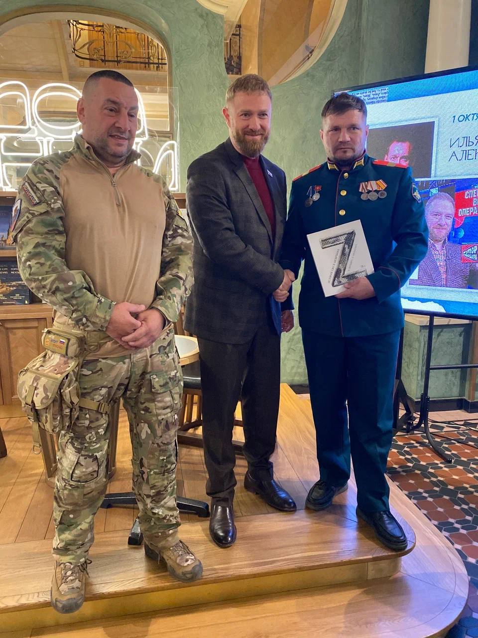 Он снял его и показал залу. А у меня появилась возможность рассказать историю двух русских патриотов – Давида Соколова («ТЮР») и Николая Ковалёва («Чапай»), активистов Народного фронта, которые погибли в августе 2024 года, помогая эвакуировать мирных жителей из приграничных районов Курской области.