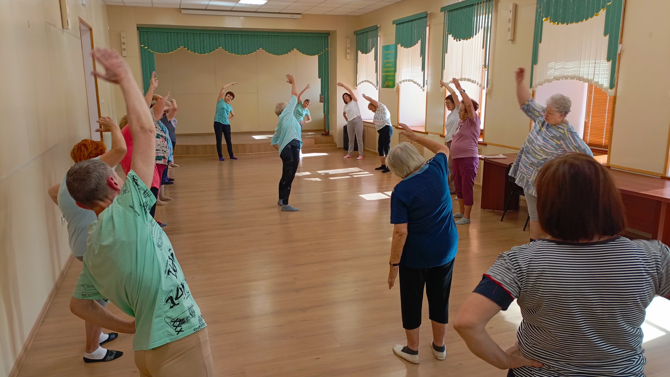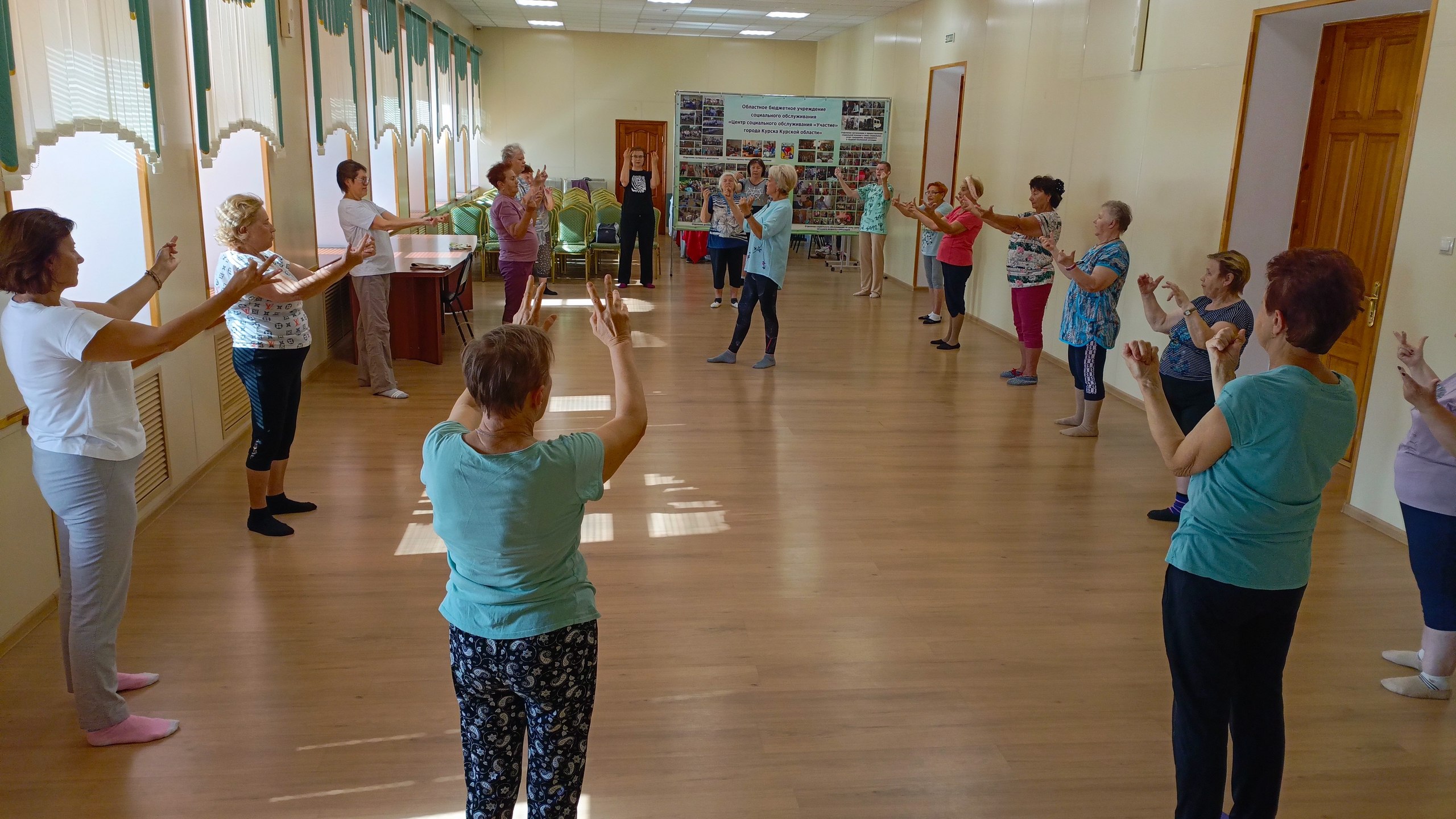 На базе ОБУСО "ЦСО "Участие " города Курска" продолжаются занятия оздоровительной гимнастикой для старшего поколения курян в рамках проекта "Курское долголетие".