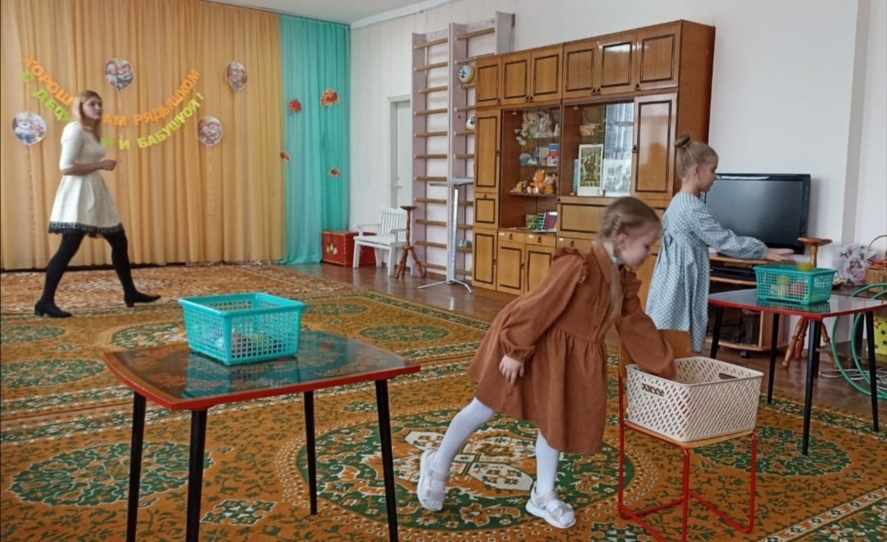 Провели интересную эстафету: "Посади и собери картошку" и поиграли в игру "Сварим борщ и компот", а бабушки потом проверяли, кто сумел правильно выбрать продукты для приготовления.