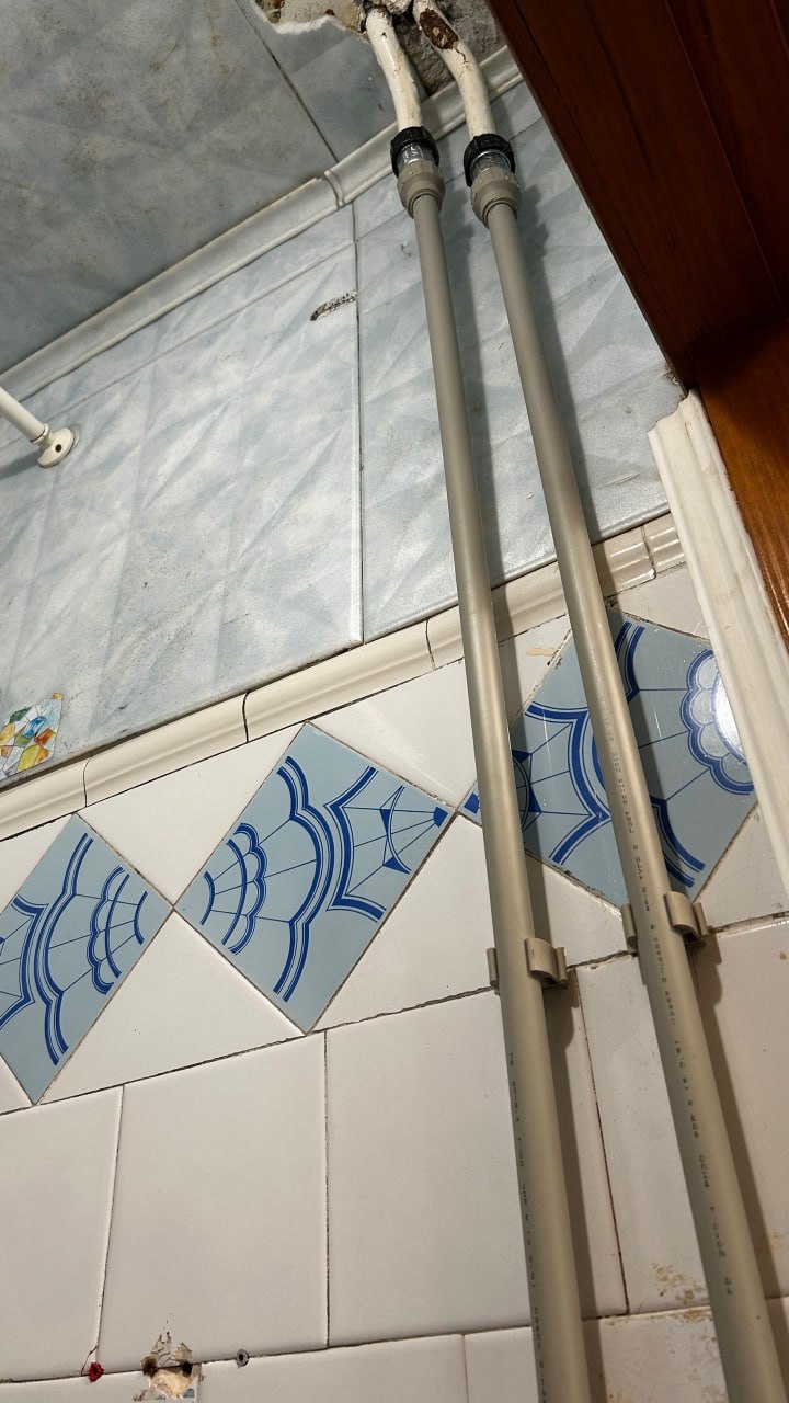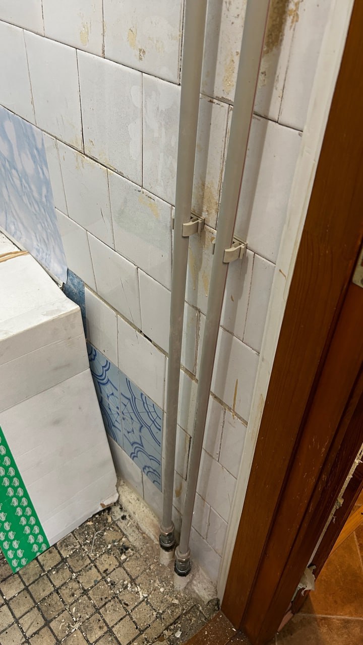 Хочется отметить, что здесь, в отличие от квартиры на Школьной , замена прошла аккуратно. К тому же, в этот раз они попросили картонку для защиты поверхности, поэтому следов от сварки на стенах почти нет. Теперь у людей стоят новые пластиковые трубы до самого потолка.