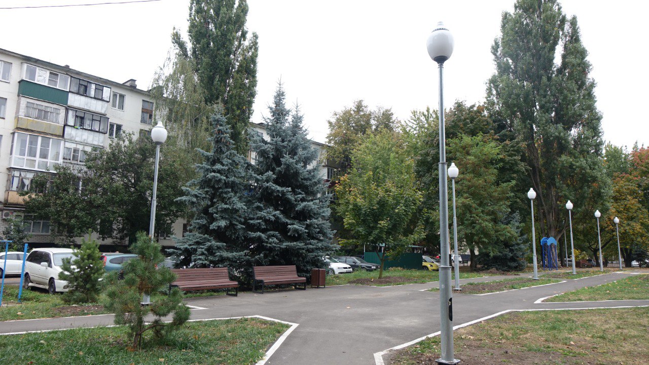 В рамках благоустройства общественной территории «Автогородок» выполнено освещение – установлены современные уличные торшерные светильники.