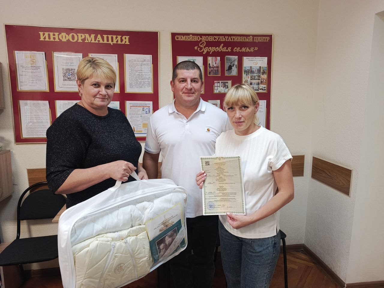 В рамках Всероссийской акции «Подарок новорожденному» молодым родителям были торжественно вручены сертификаты на единовременную выплату при рождении ребенка от главы района и подарки от губернатора Курской области.