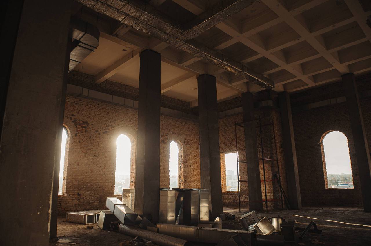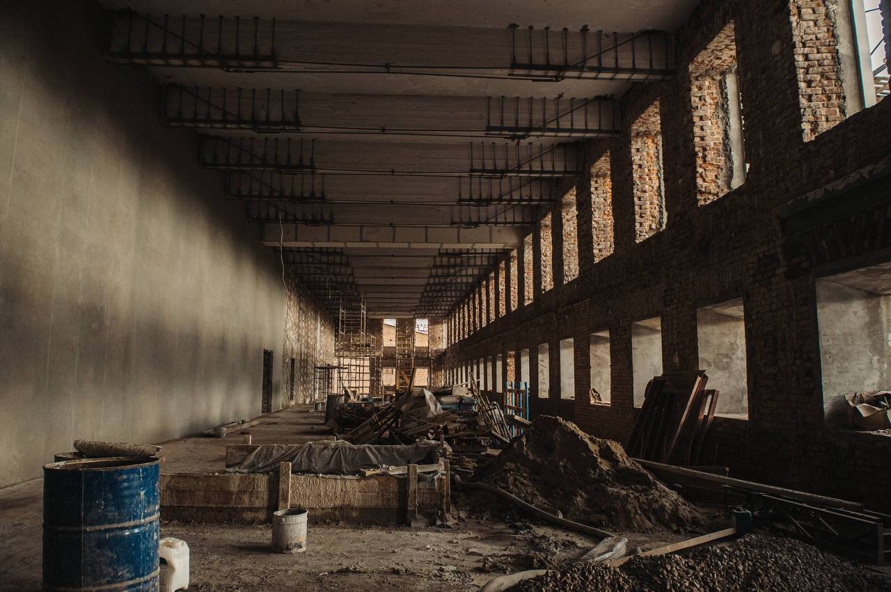 В настоящее время подрядчик ведет работы по восстановлению фасада, планируется установка окон на первом этаже и завершение закрытия теплового контура. На верхних этажах установлены перегородки, ведутся штукатурные работы и подготовка к запуску отопления.
