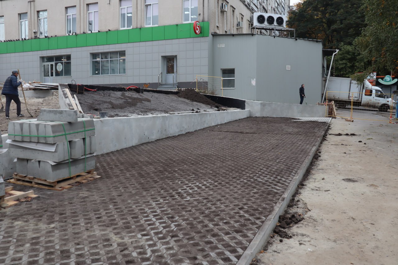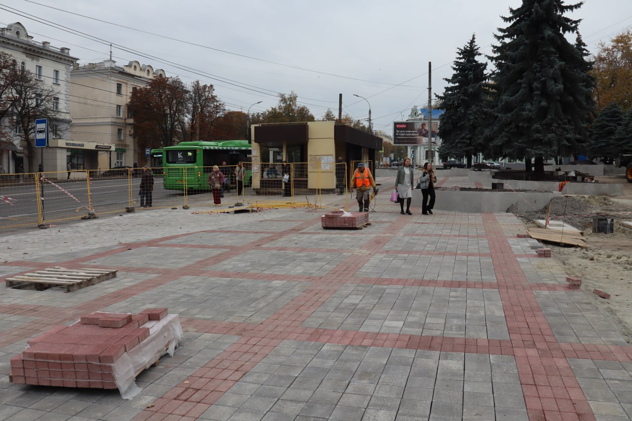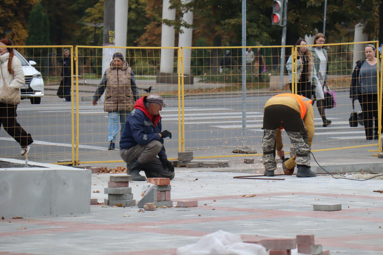 Продолжаются работы по благоустройству общественной территории возле торгового центра «Куряночка». Специалисты продолжают укладку тротуарной плитки. Благоустройство ведется в рамках федерального проекта «Формирование комфортной городской среды» и нацпроекта «Инфраструктура для жизни». Фото: Александр Баламутов. #нацпроект46 #Курск #комфортнаясреда