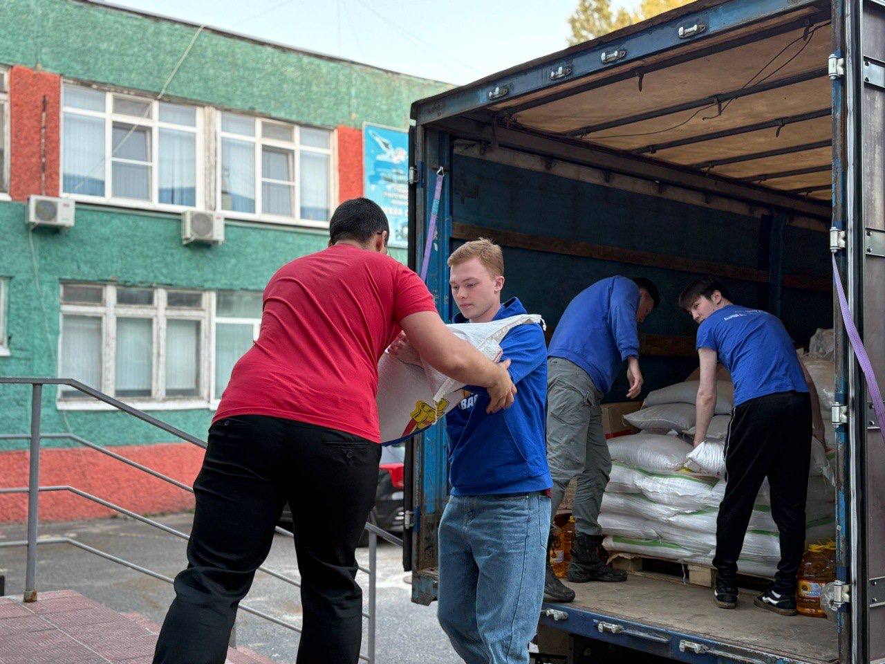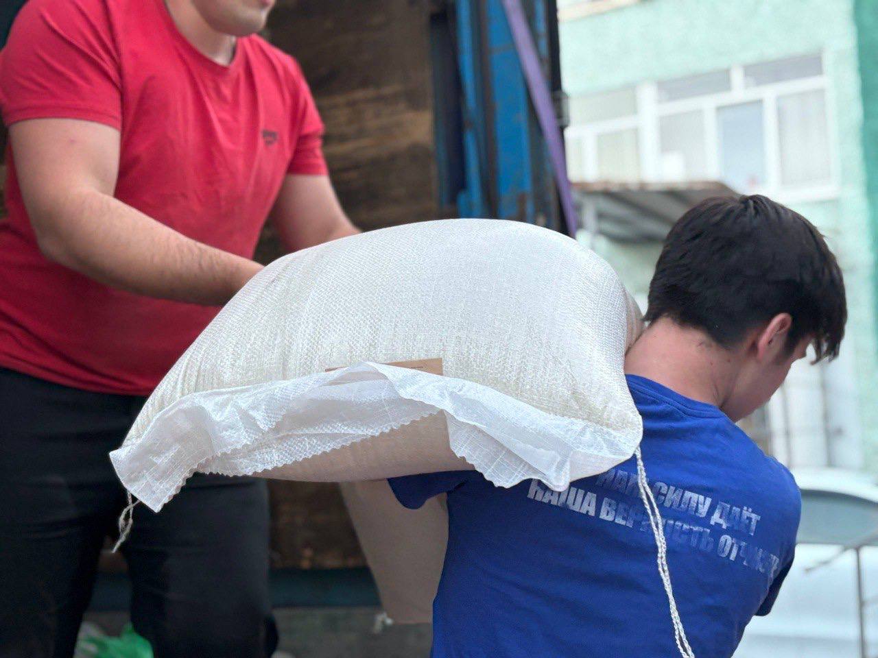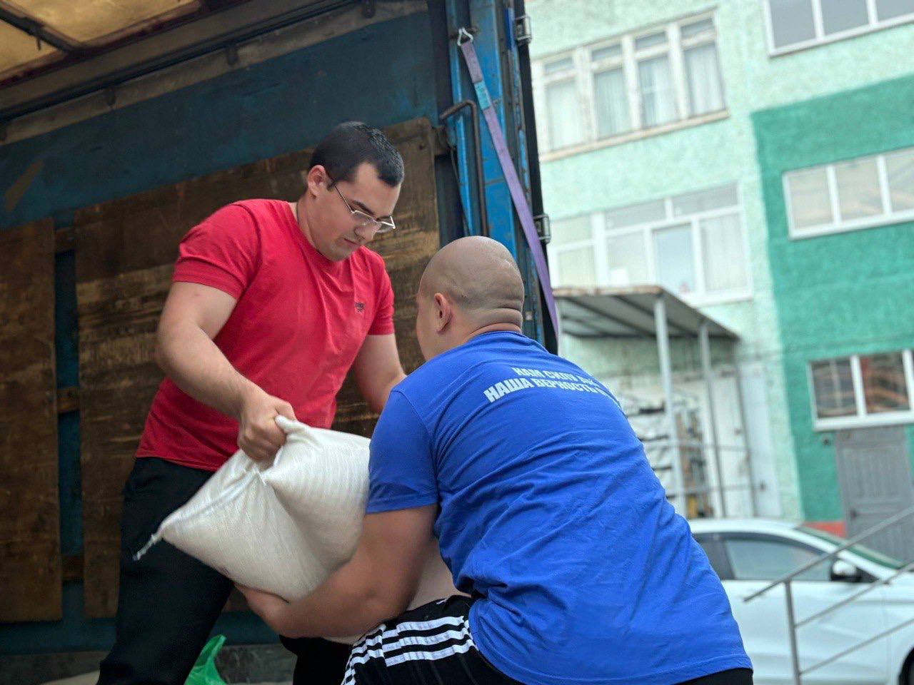 Молодогвардейцы разгрузили фуру с продуктами питания и средствами личной гигиены, в ближайшее время их доставлены военным.