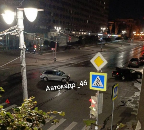 По предварительным данным очевидцев, которые выложили фото с места в паблике «Автокадр_46», автомобили столкнулись на пересечении улиц Ленина и Кирова.