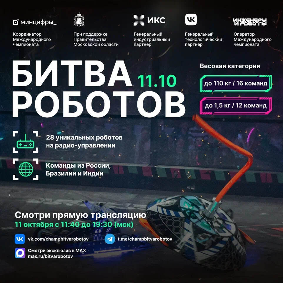11 октября состоится второй отборочный этап Международного чемпионата по битве роботов