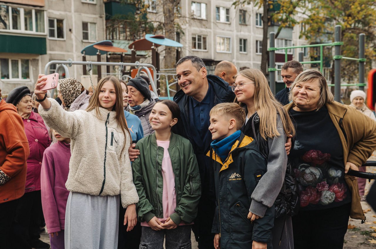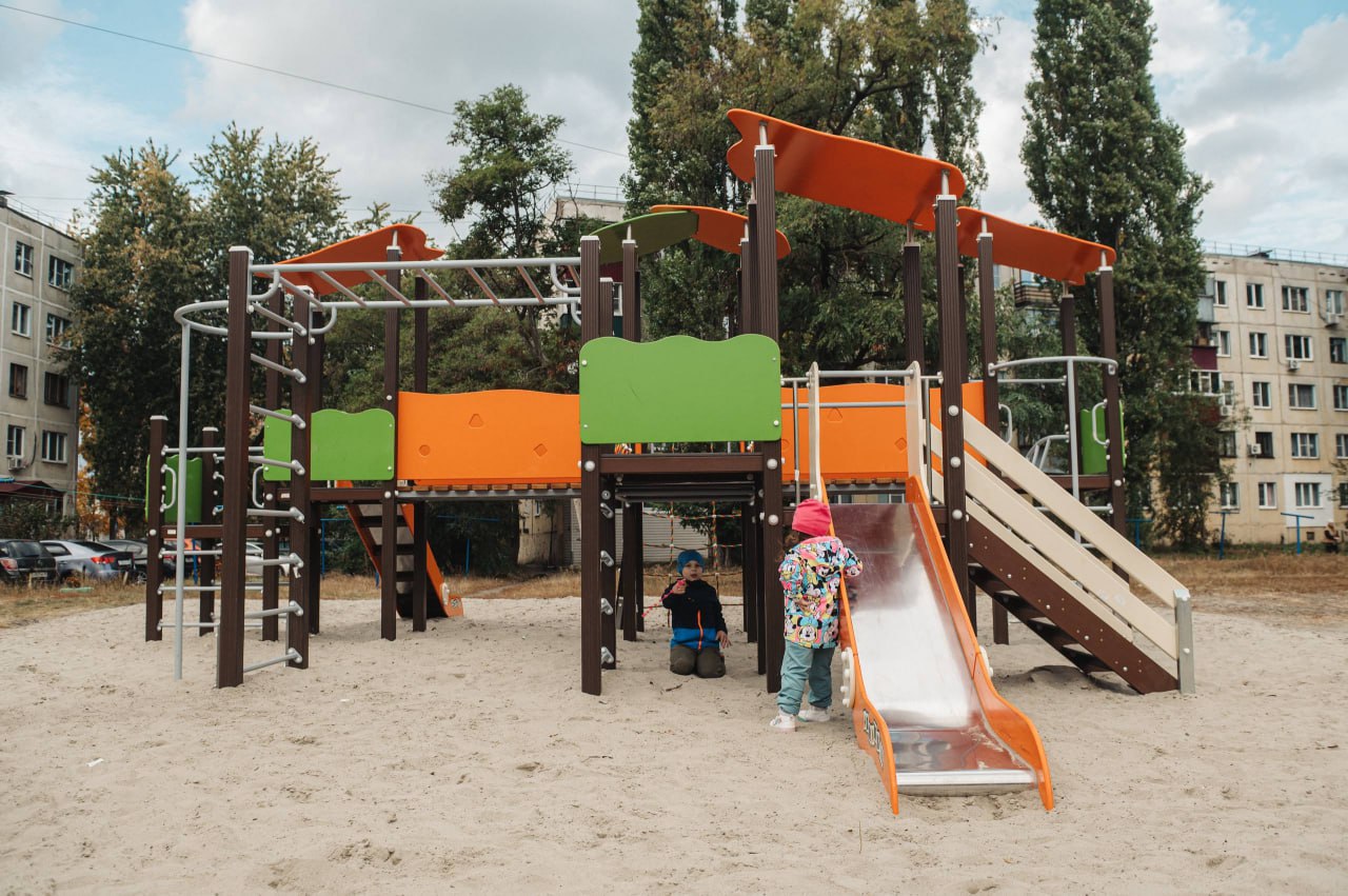 Губернатор осмотрел площадки в микрорайоне Волокно. До конца года в регионе появятся 68 новых игровых комплексов — их адреса выбрали сами жители.