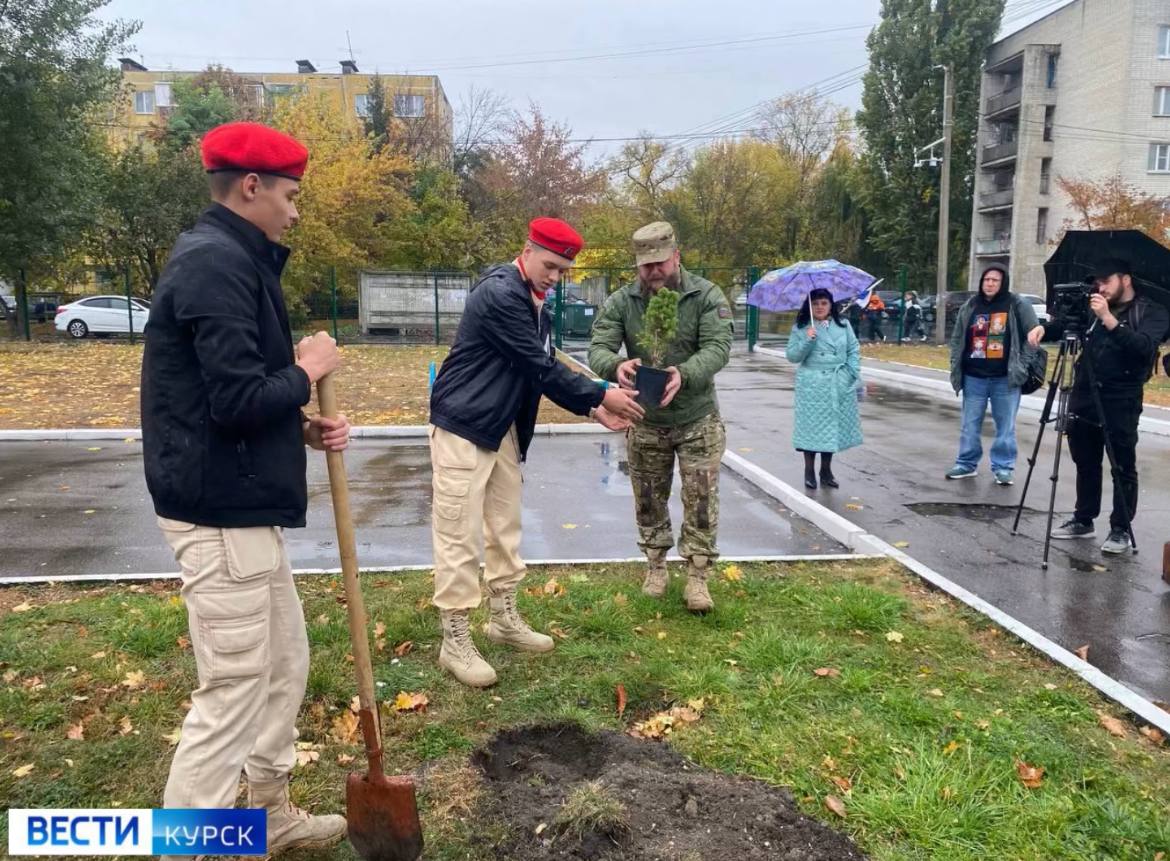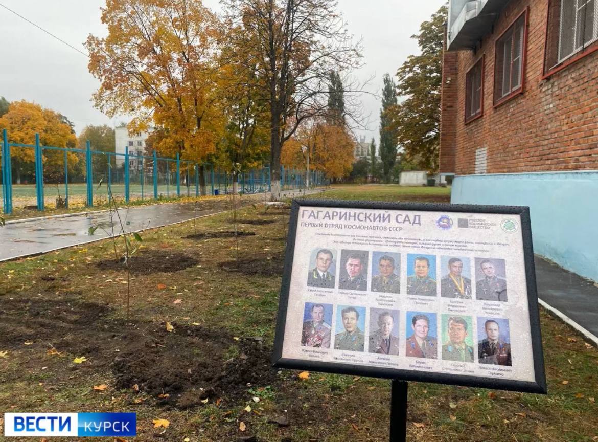 Теперь у входа в образовательное учреждение, которая носит имя первого космонавта, красуется аллея из 12-ти деревьев. Вместе с бойцами добровольческой бригады «Барс-Курск» школьники высадили саженцы вишни, а также ель. Её наши военные привезли из Мелитополя.