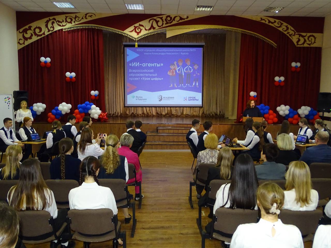 Сегодня в школе № 55 города Курска прошел урок на тему на тему «ИИ-агенты» от Благотворительного фонда Сбербанка «Вклад в будущее» при экспертной поддержке Сбера и команды GigaChat