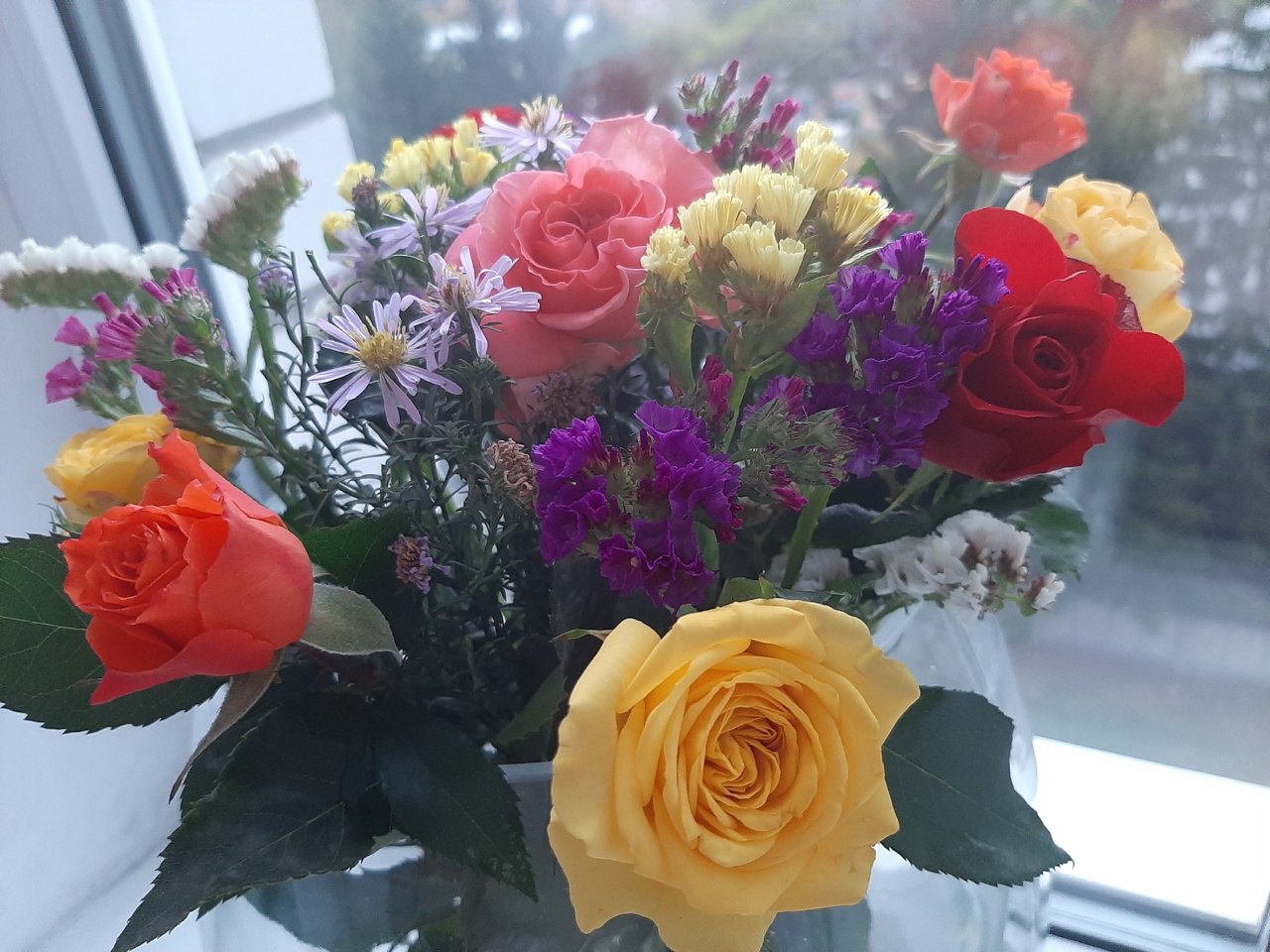 Сегодня за окном пасмурно, но не стоит грустить. Будьте ярким лучиком солнца друг другу, вместе мы можем сделать мир ярче А в эту минуту пусть вас порадует этот красивый осенний букет!