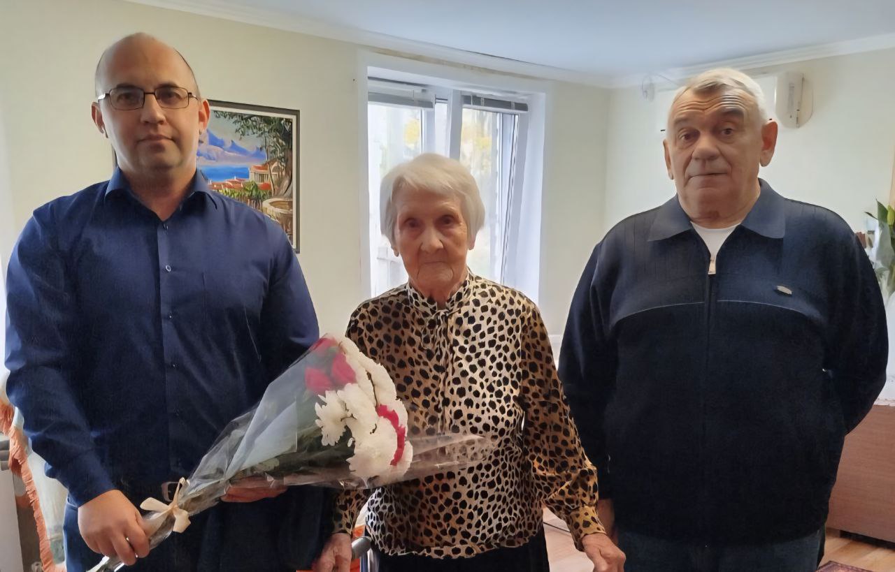 Вместе с Председателем Совета Ветеранов нашего города Юрием Владимировичем Спицыным передали Августе Демидовне поздравления от Президента Российской Федерации Владимира Владимировича Путина и Губернатора Курской области Александра Евсеевича Хинштейна.